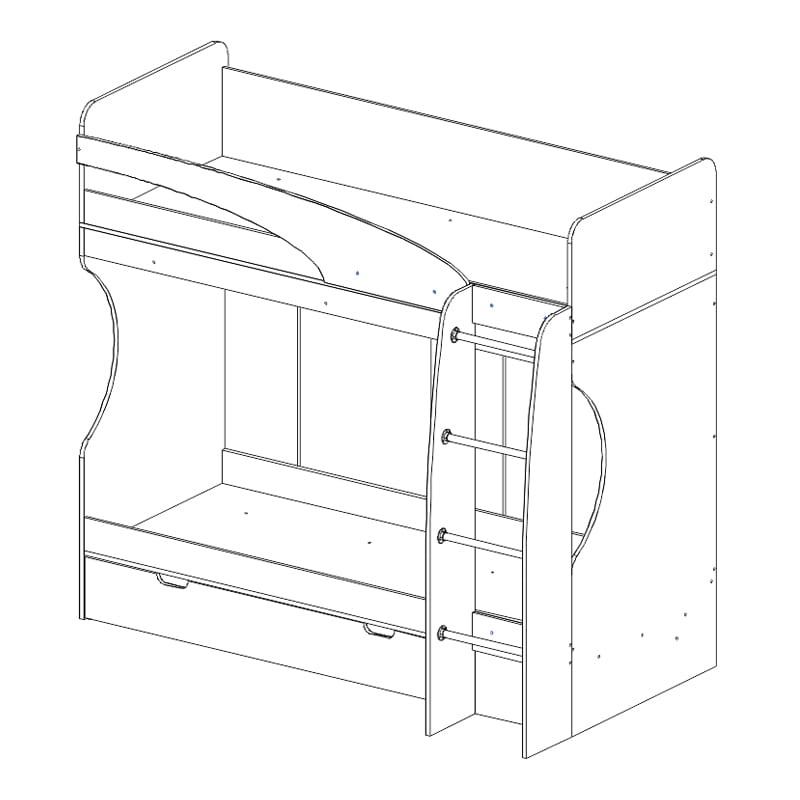 Прекрасное решение для детской или подрастковой комнаты. Спальное место кроватей: 800х2000 мм. Вместительный выдвижной ящик. Максимальная нагрузка: 1 ярус - 120 кг. 2 ярус - 80 кг.Матрасы в стоимость кровати не входят и приобретаются отдельно.