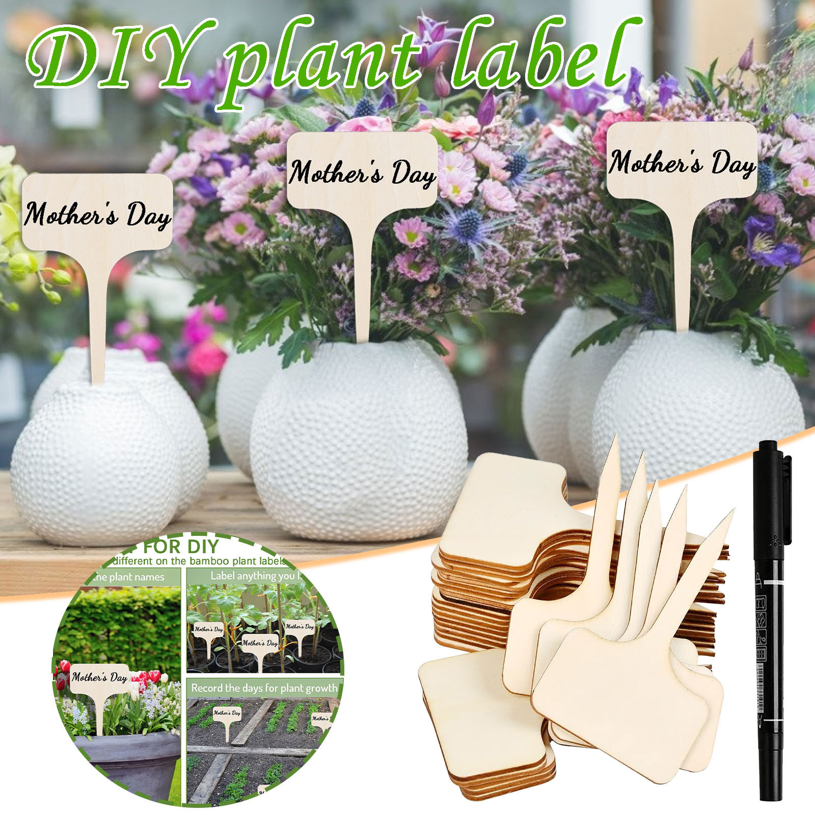 Деревянный знак садовые ярлыки для растений вставить землю 50 шт с маркером ручка 2 мл садовые маркеры для семян горшечные травы инструменты для изготовления цветов