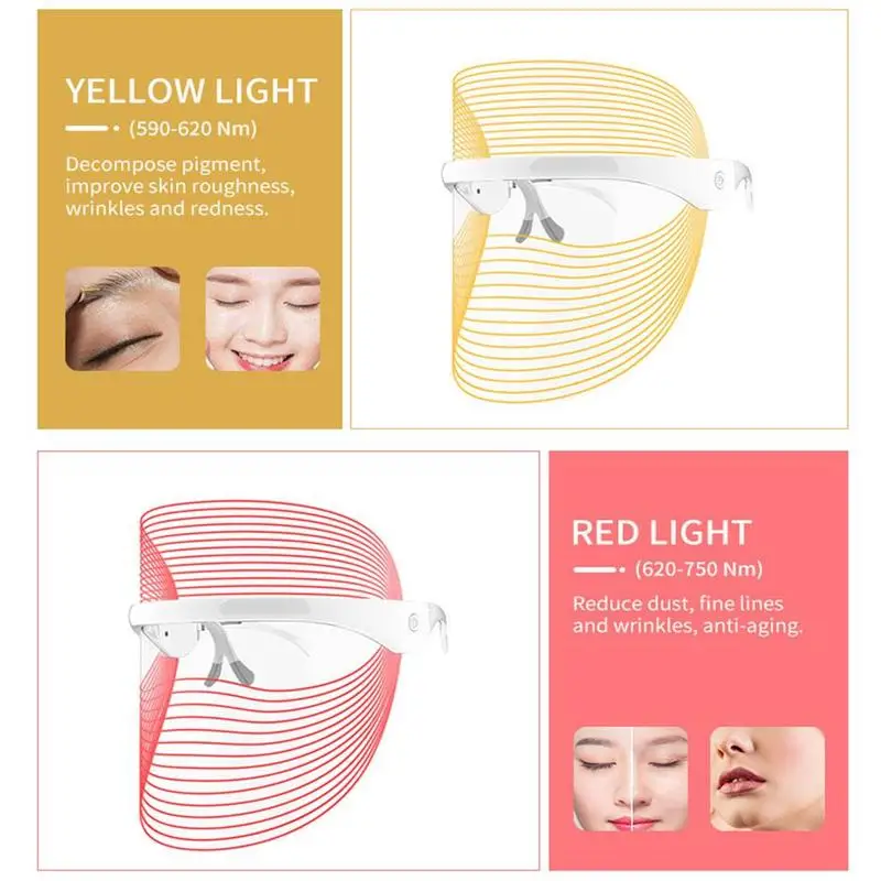 Красный светильник (длина волны 630нм) режим против морщин: способствует производству коллагена, отбеливать пятна, омолаживать кожу, против морщин, восстанавливает поврежденную кожу и разглаживает тонкие линии.