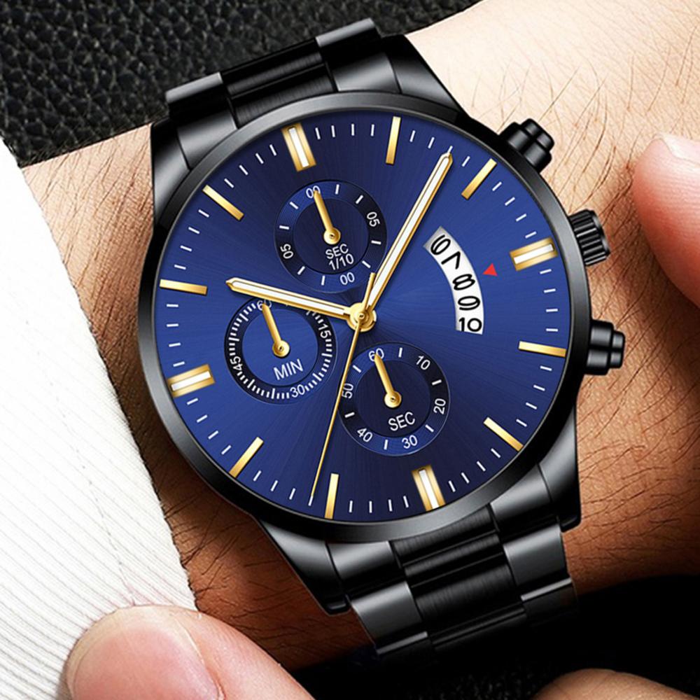 Простые Модные мужские часы простые повседневные мужские деловые часы со стальным ремешком с пряжкой Дата кварцевые аналоговые наручные часы Мужские часы Reloj Hombre