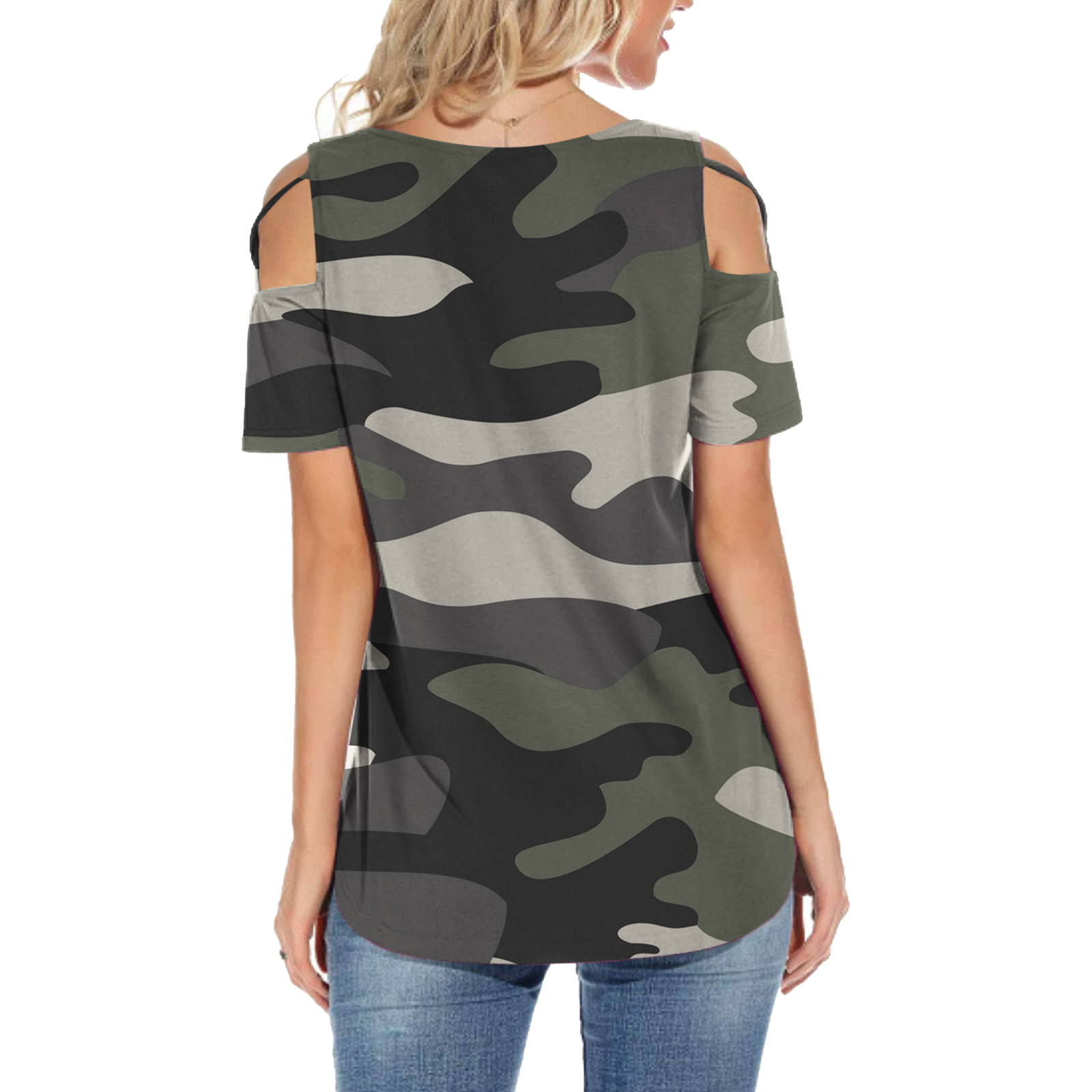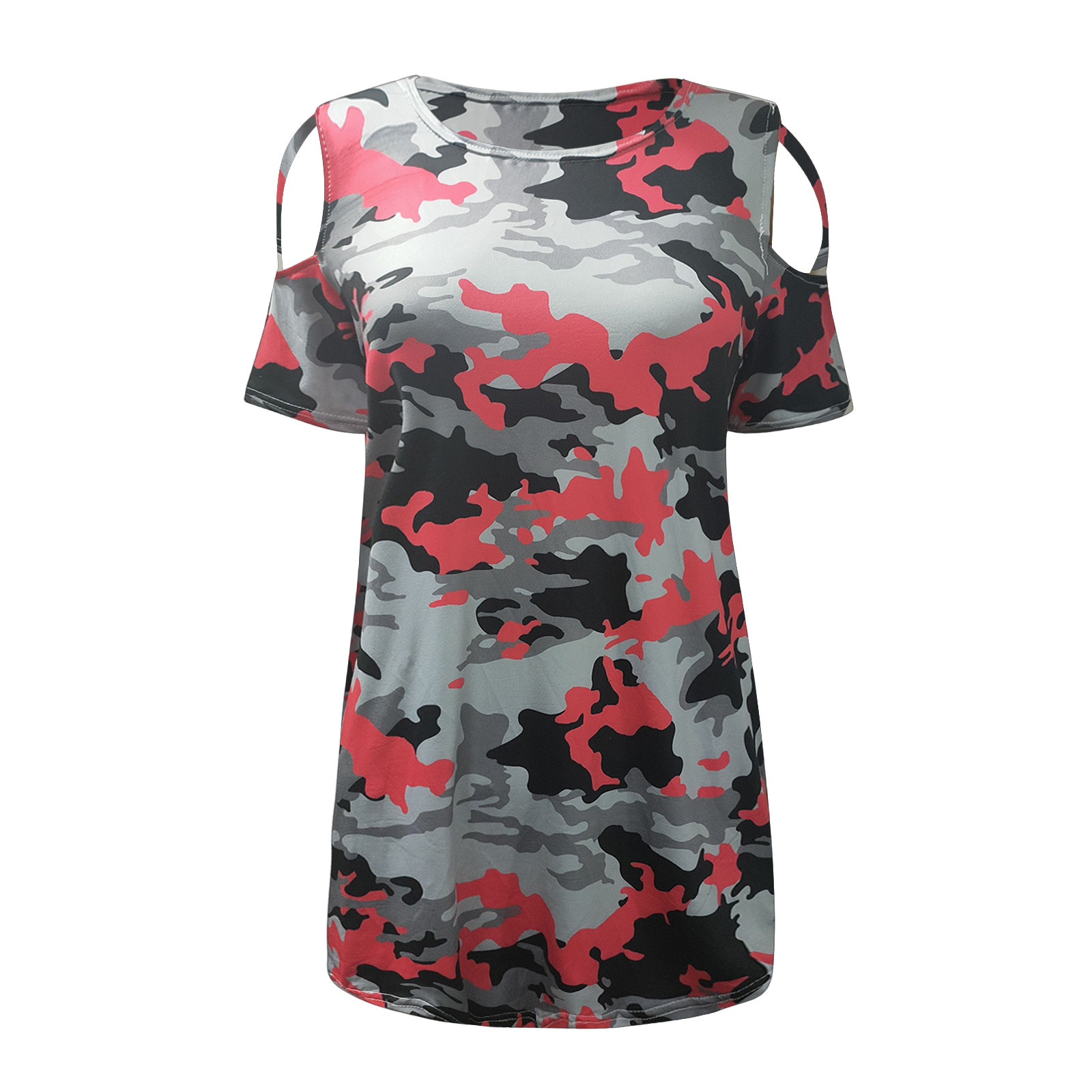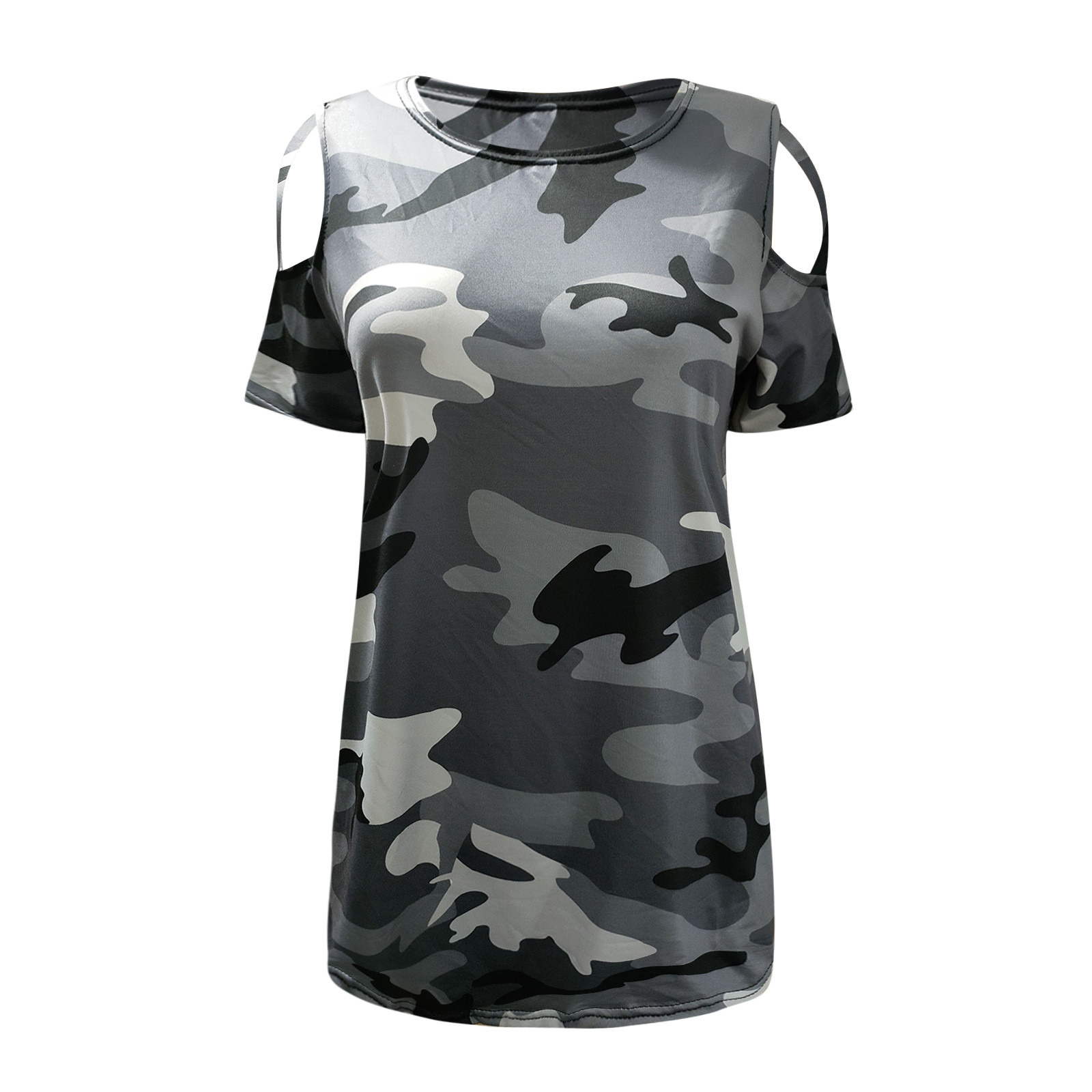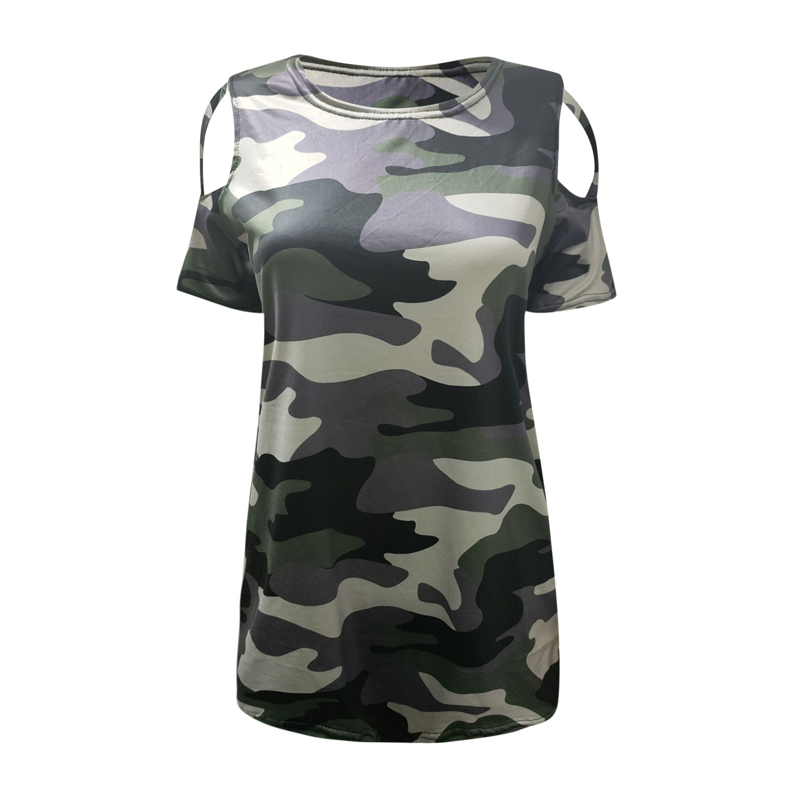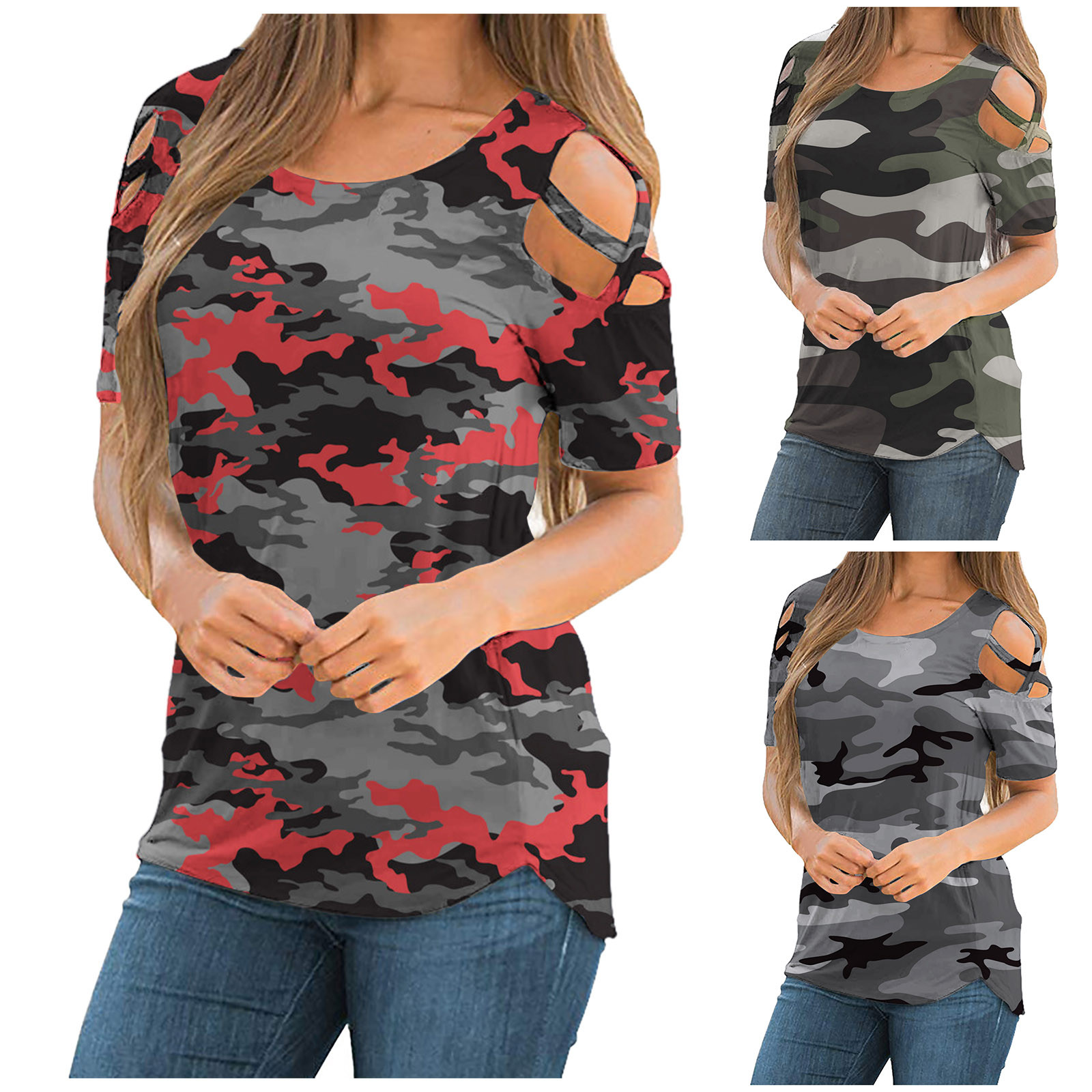 Модные женские камуфляжные топы с короткими рукавами и круглым вырезом; Повседневный пуловер
