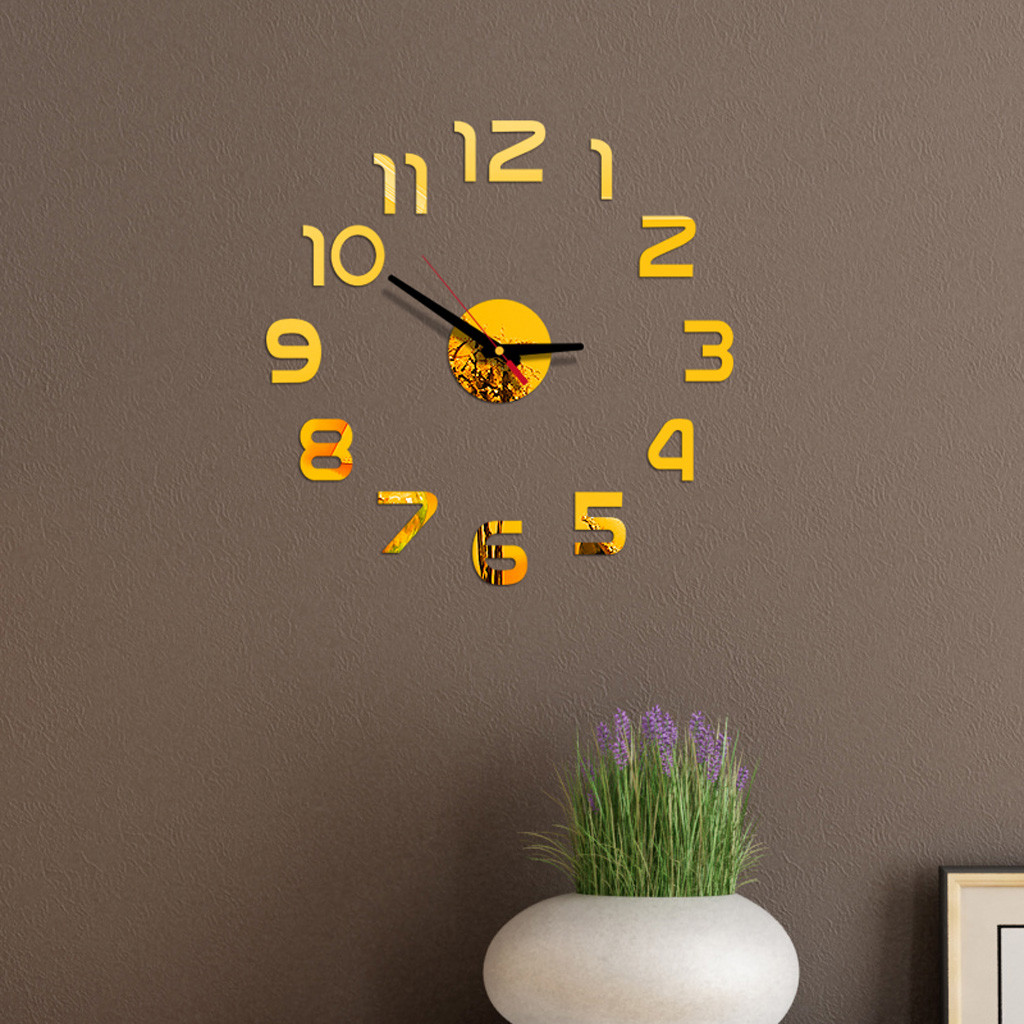 1PC DIY Wall Clock 3D Mirror Surface Sticker Home Office Decor Clock(without retail package)