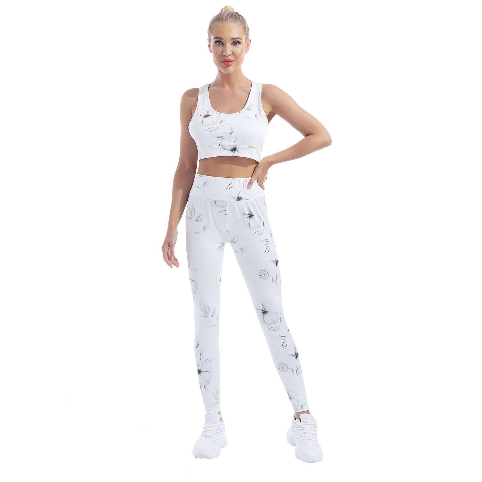 U-образный вырез, съемные подушечки, ударопрочный эластичный подол, брюки с широким эластичным поясом.