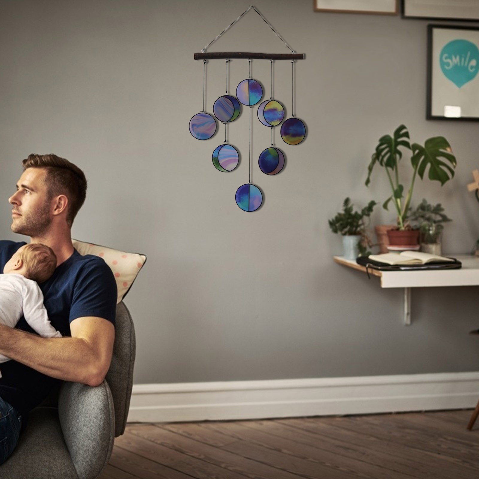 Прозрачная Радуга Радуга висит луна фазы стены украшения цветного дерева