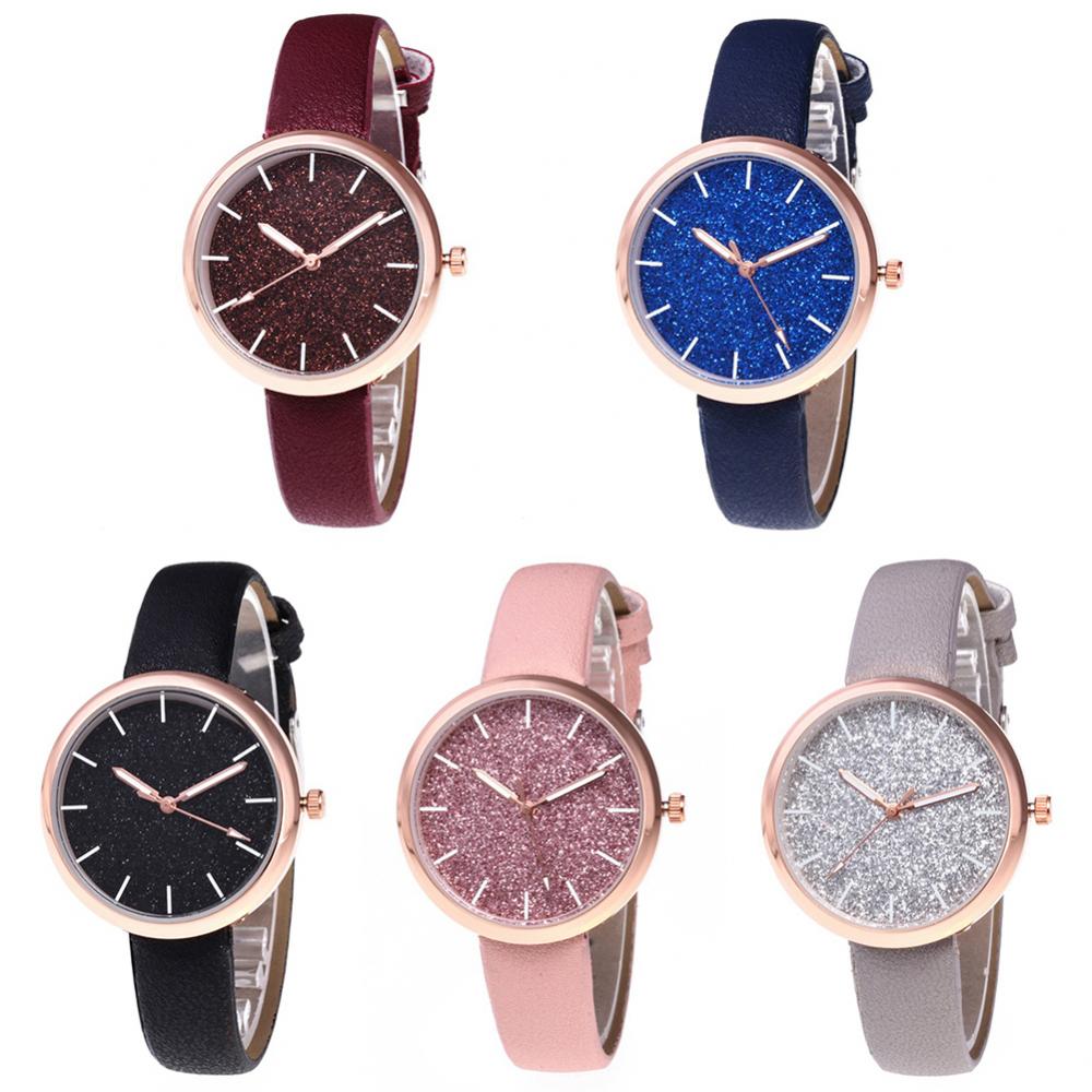 Часы женские кварцевые с круглым циферблатом, на ремешке из искусственной кожи