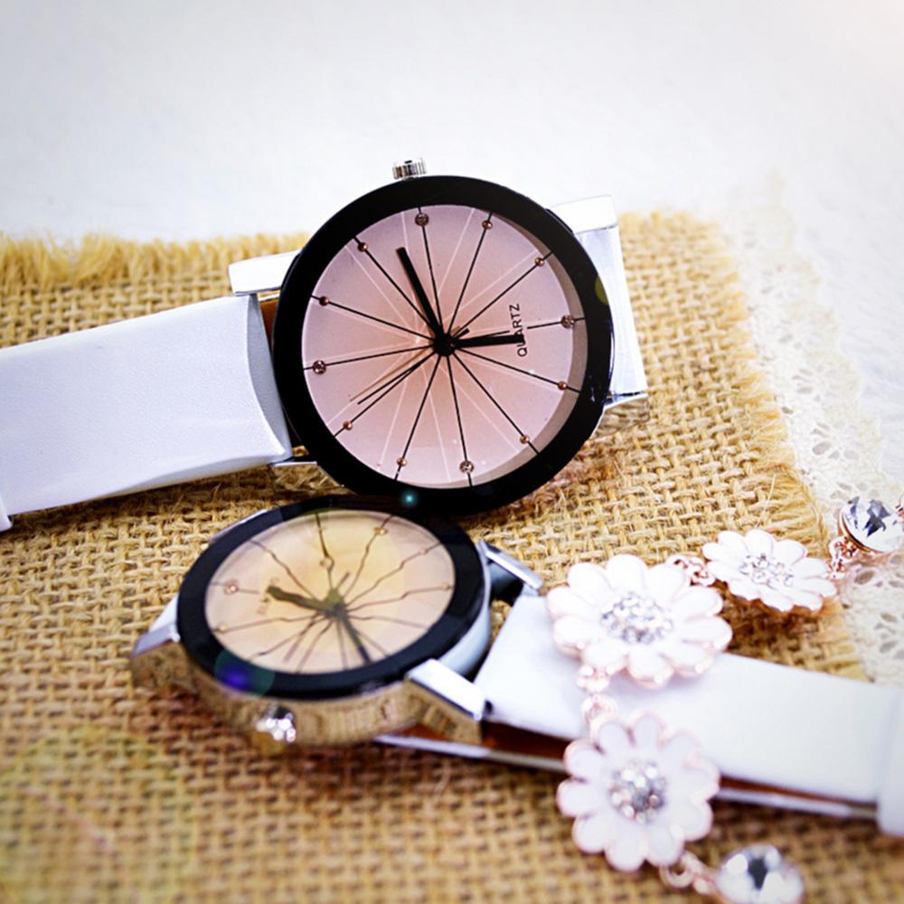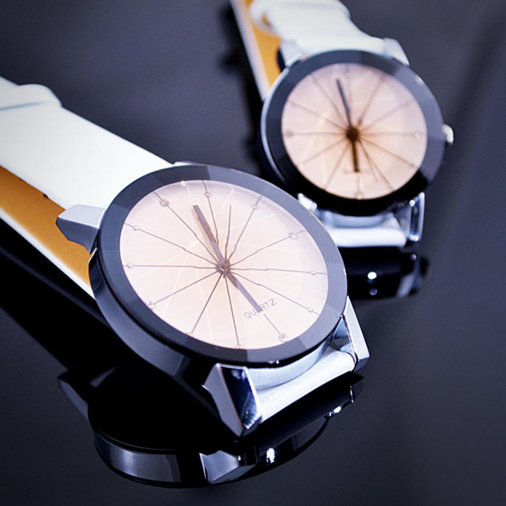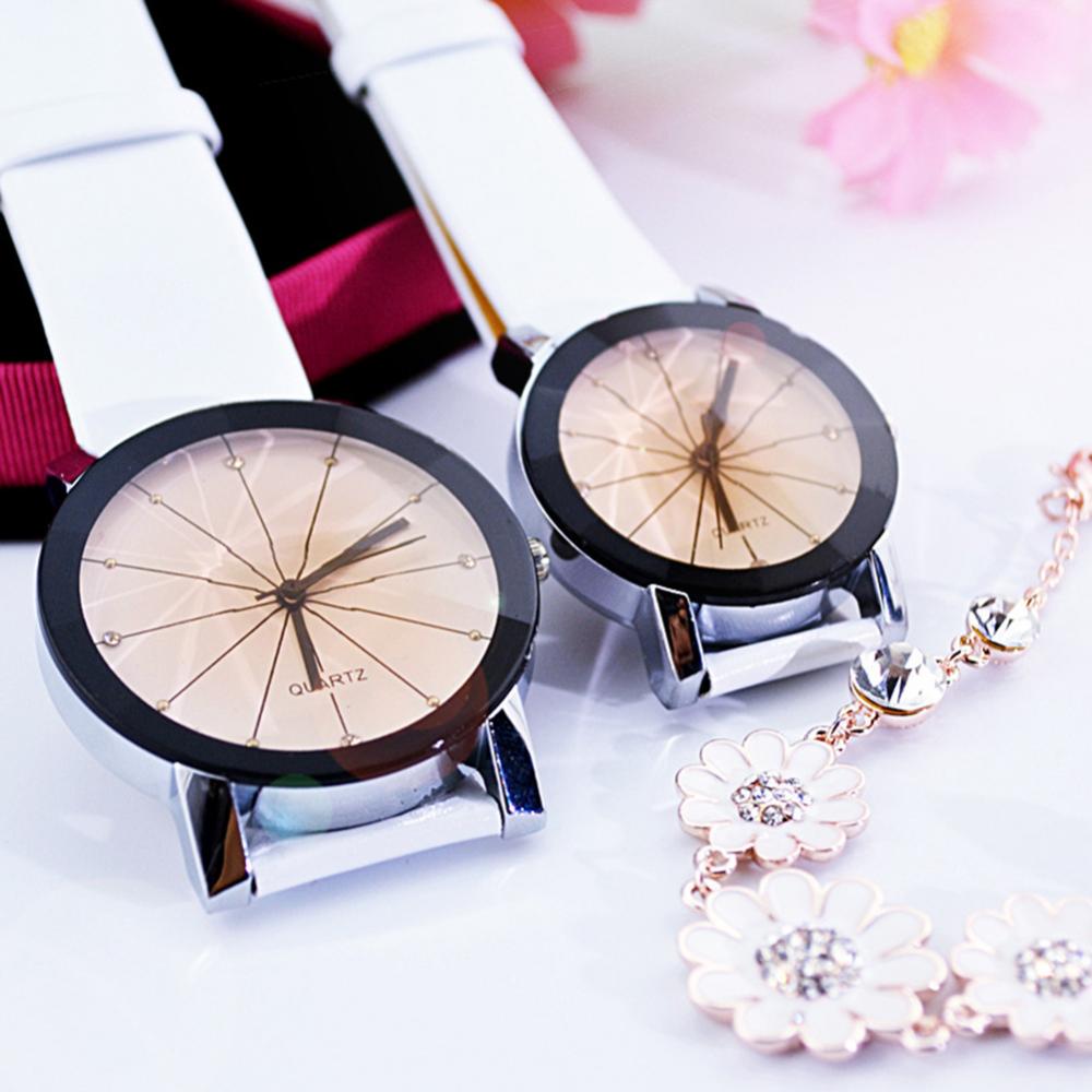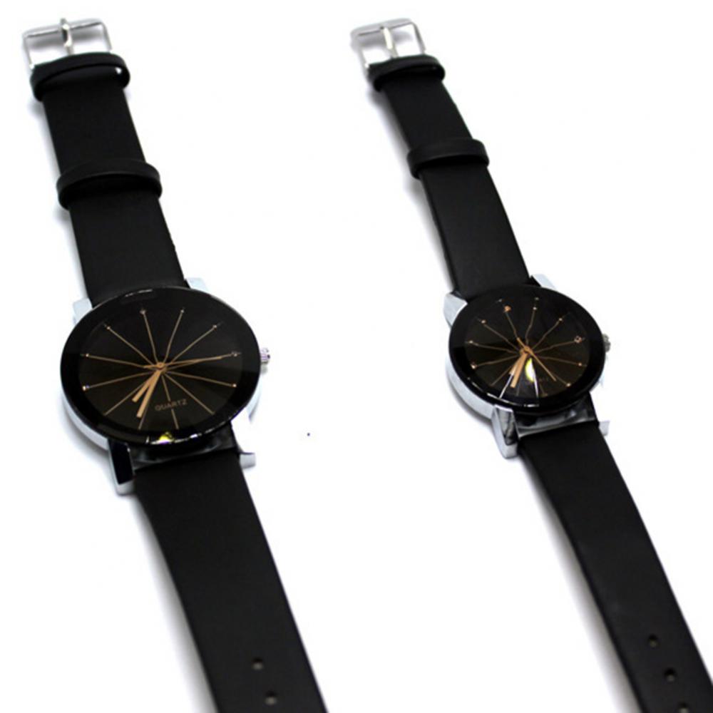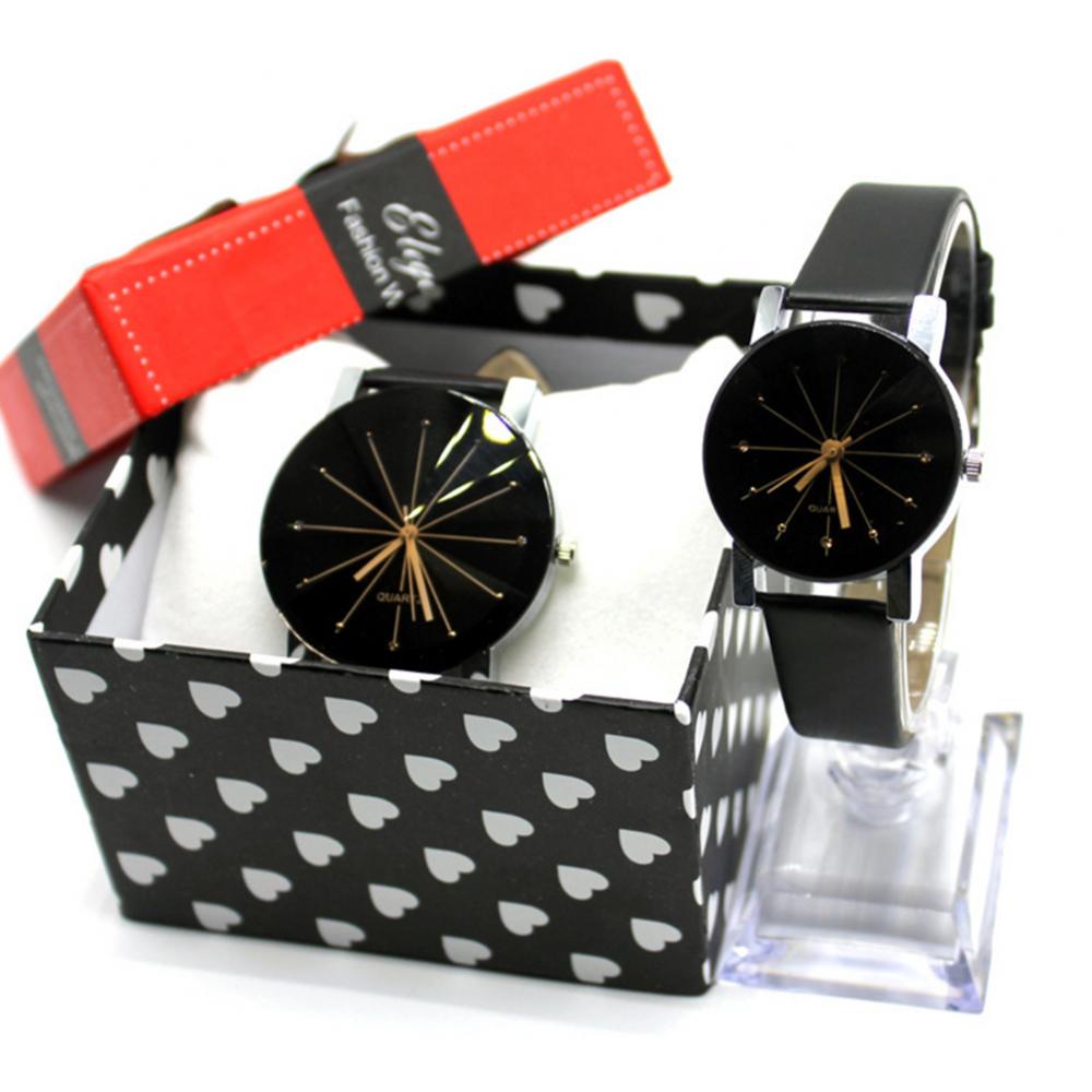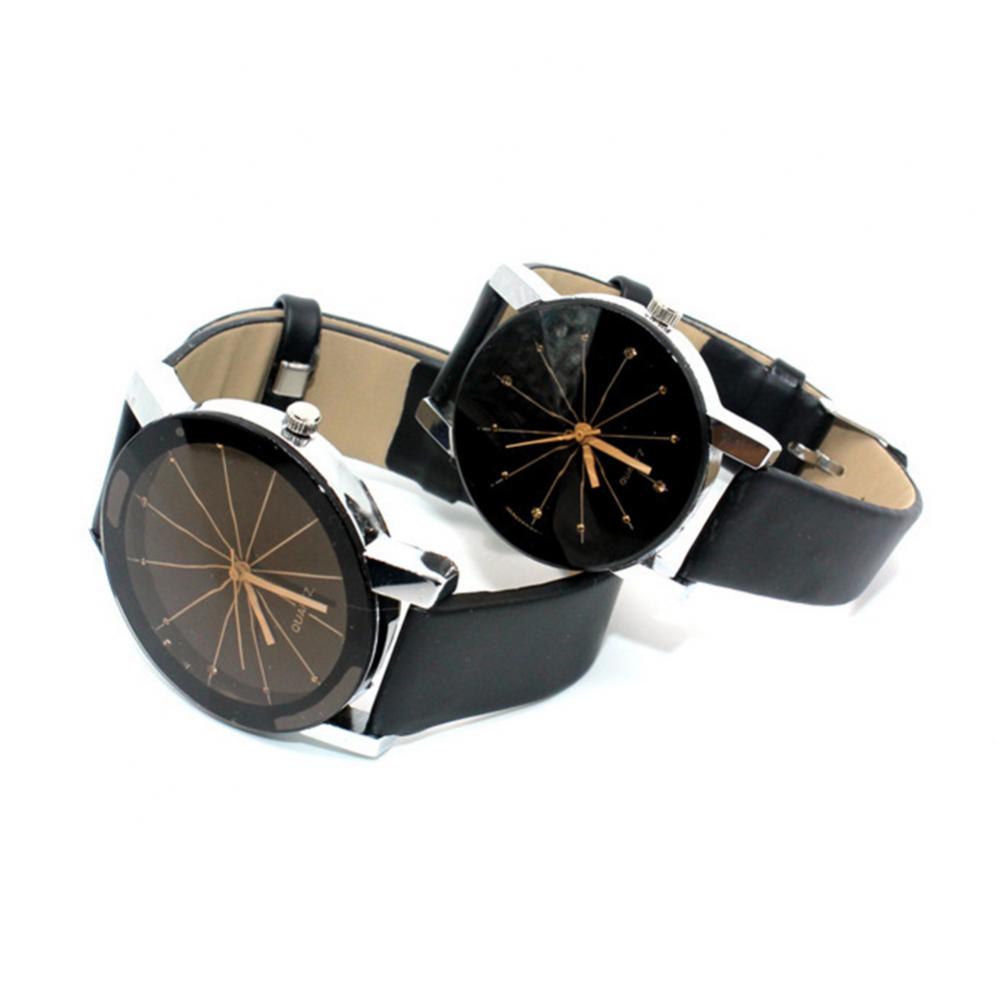 Мужские и женские мужские наручные часы из искусственной кожи с круглым указателем кварцевые часы для влюбленных