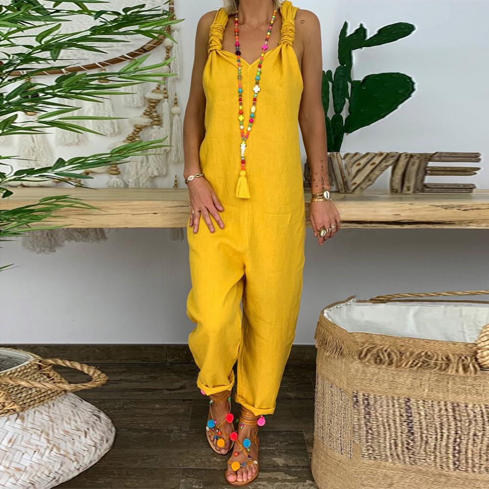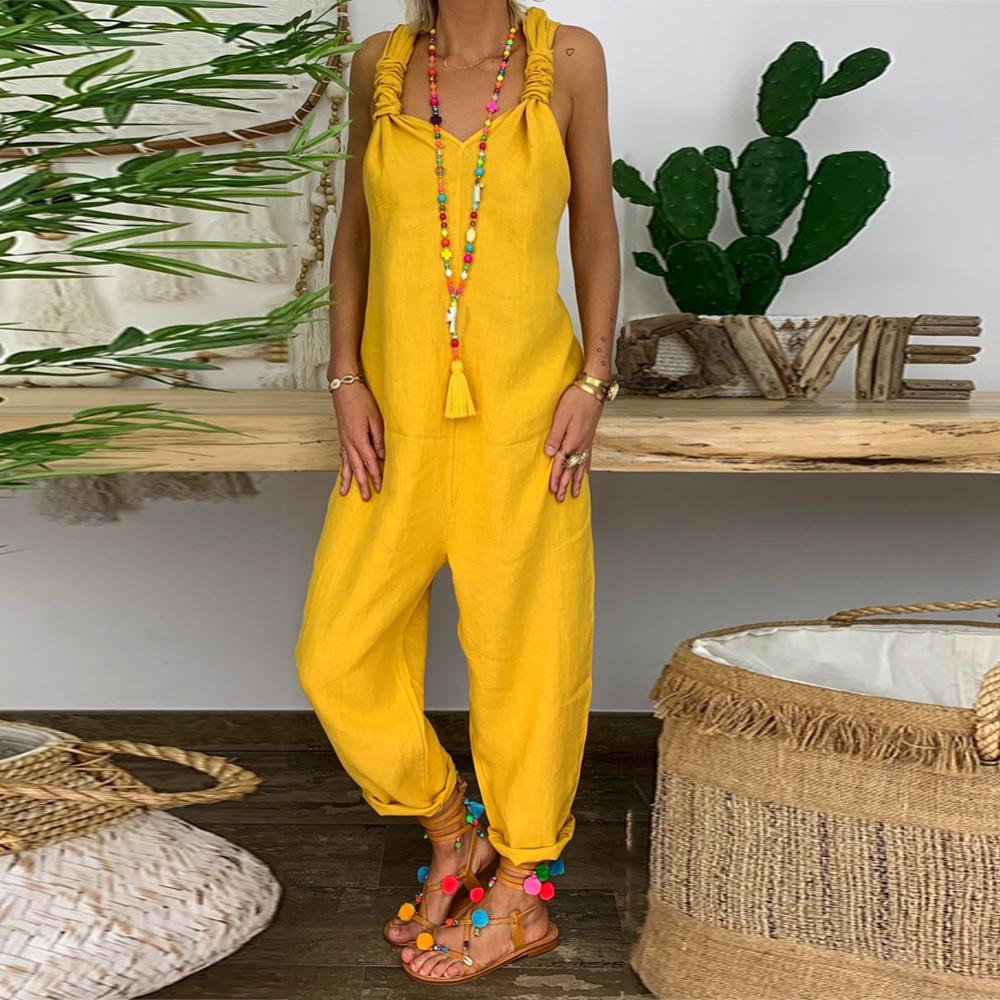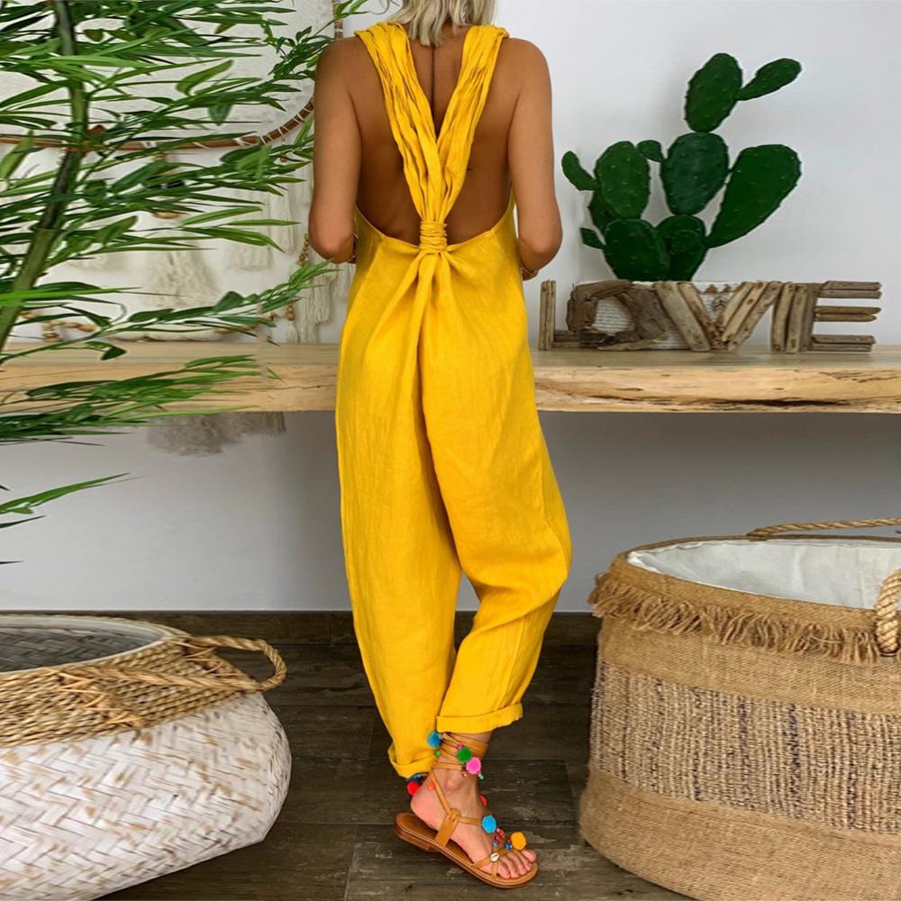 Женский однотонный цветной нагрудник, комбинезон без рукавов с открытой спиной, комбинезон с узлом, комбинезон размера плюс
