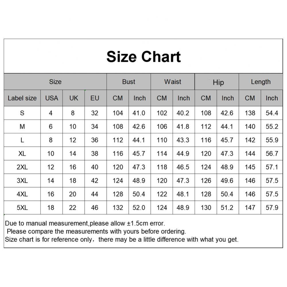 [Наш Размер 4XL] Обхват груди: 128 см/50,4 ", обхват талии: 122 см/48", обхват бедер: 128 см/50,4 ", Длина: 147 см/57,9" (прибл.)