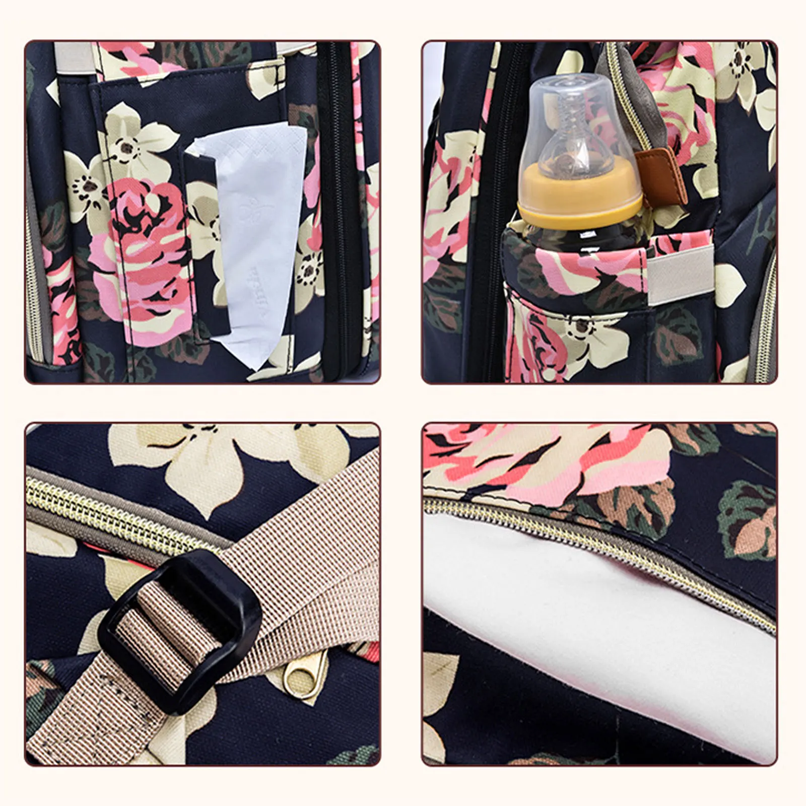 Большая емкость:Имеет несколько карманов, вы можете держать все вещи, которые нужно ребенку при выходе, такие как подгузники, детские бутылочки, коробки для сухого молока, ткани, одежда, нагрудники и т. Д. Дизайн отсека помогает поддерживать чистоту предметов.
