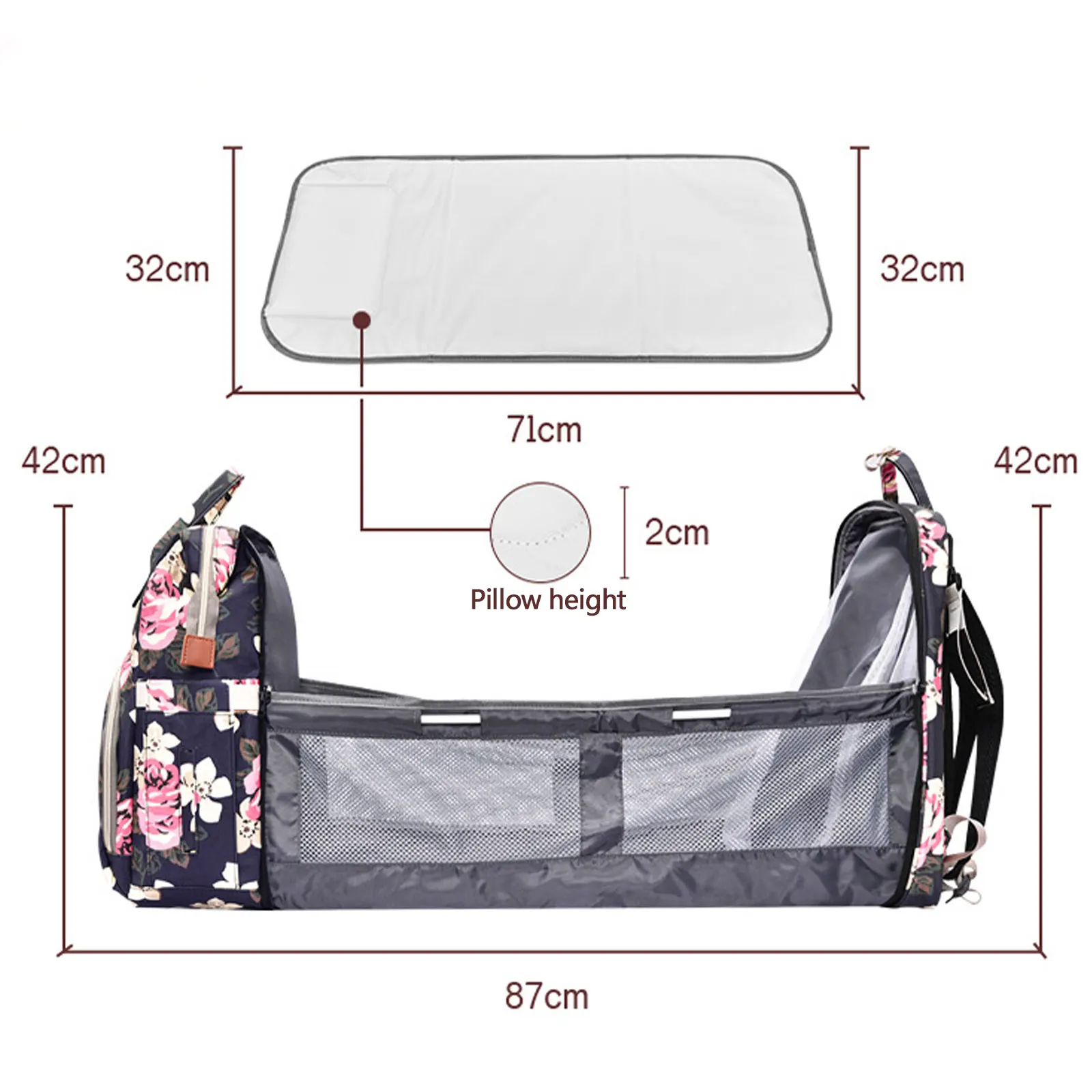Настольная кроватка:Благодаря простой эксплуатации этот рюкзак можно превратить в кроватку с забором, что позволяет ребенку спать более комфортно и защищает ребенка от падения.