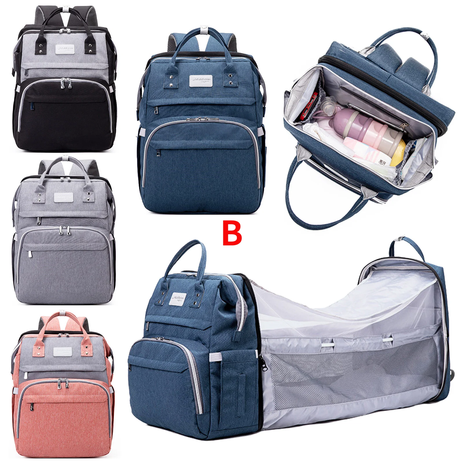 Многофункциональный водонепроницаемый рюкзак для мамы, портативная большая емкость, сумка для подгузников с пеленальной кроватью, игрушка-сетка от комаров для использования на открытом воздухе