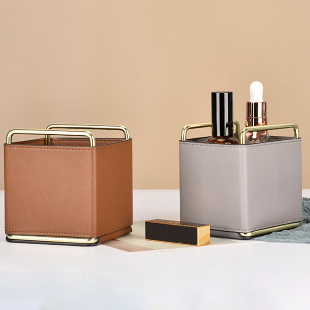 Изготовлено из искусственной кожи и железа, эта настольная коробка для хранения износостойкая и экологически чистая.