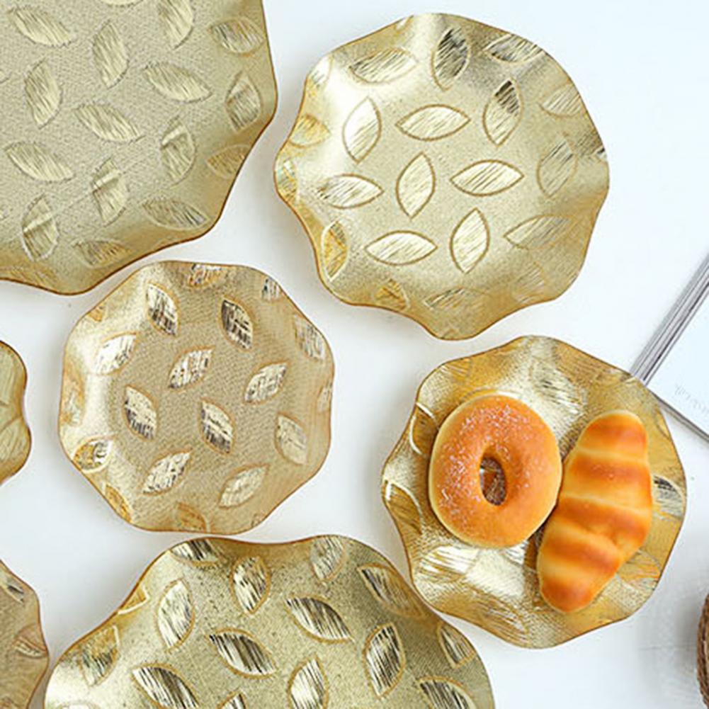 С дизайном золотого цвета и узором листьев, этот продукт является элегантным и декоративным, который используется для ювелирных изделий лоток или закуски.