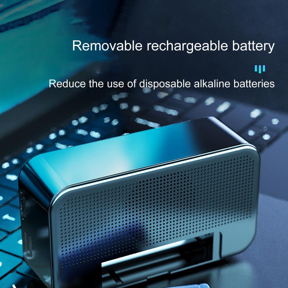 Благодаря компактному миниатюру динамик Bluetooth можно переносить. Аккумулятор большой емкости обеспечивает длительный срок службы динамика. Динамик Bluetooth также может воспроизводить музыку с помощью TF-карты.