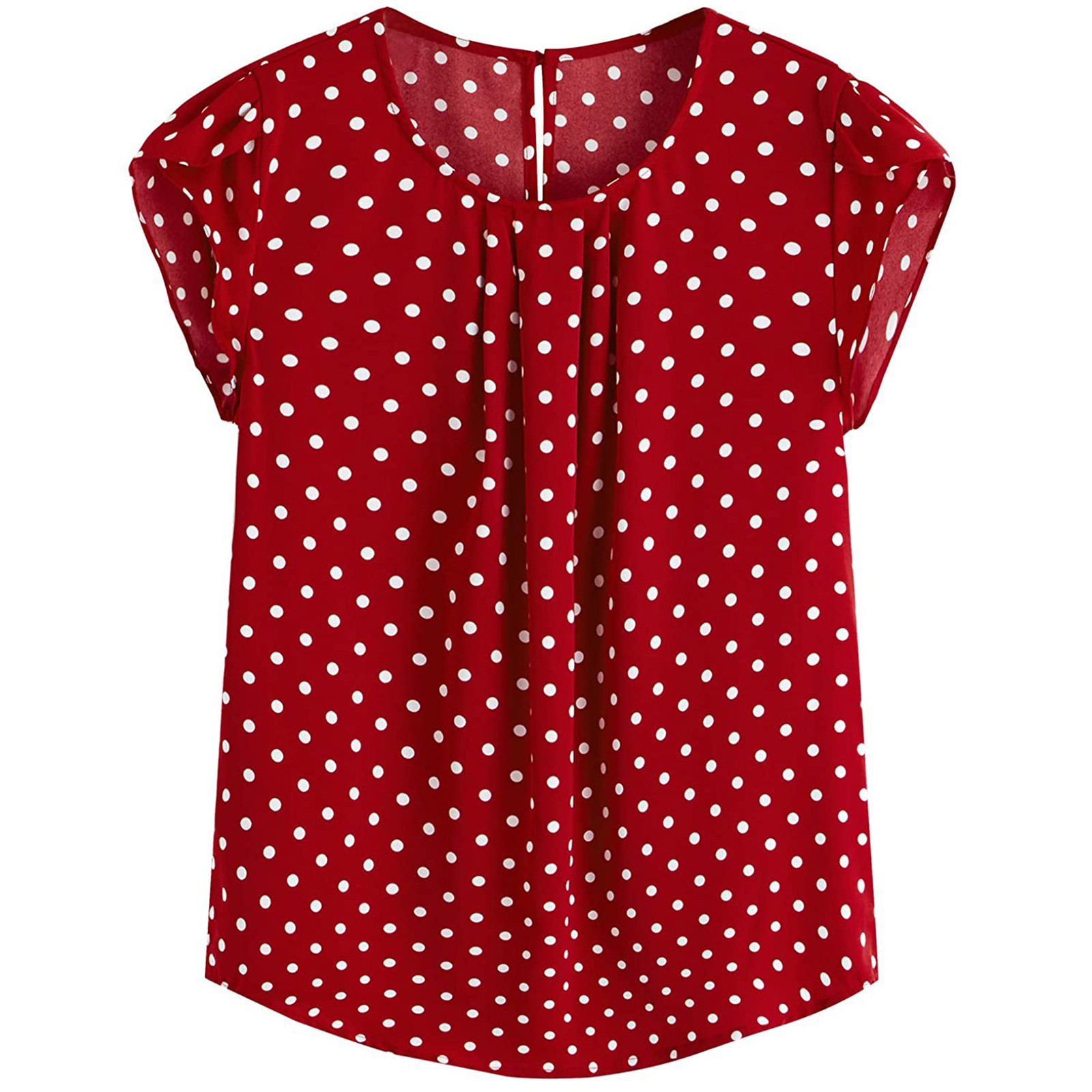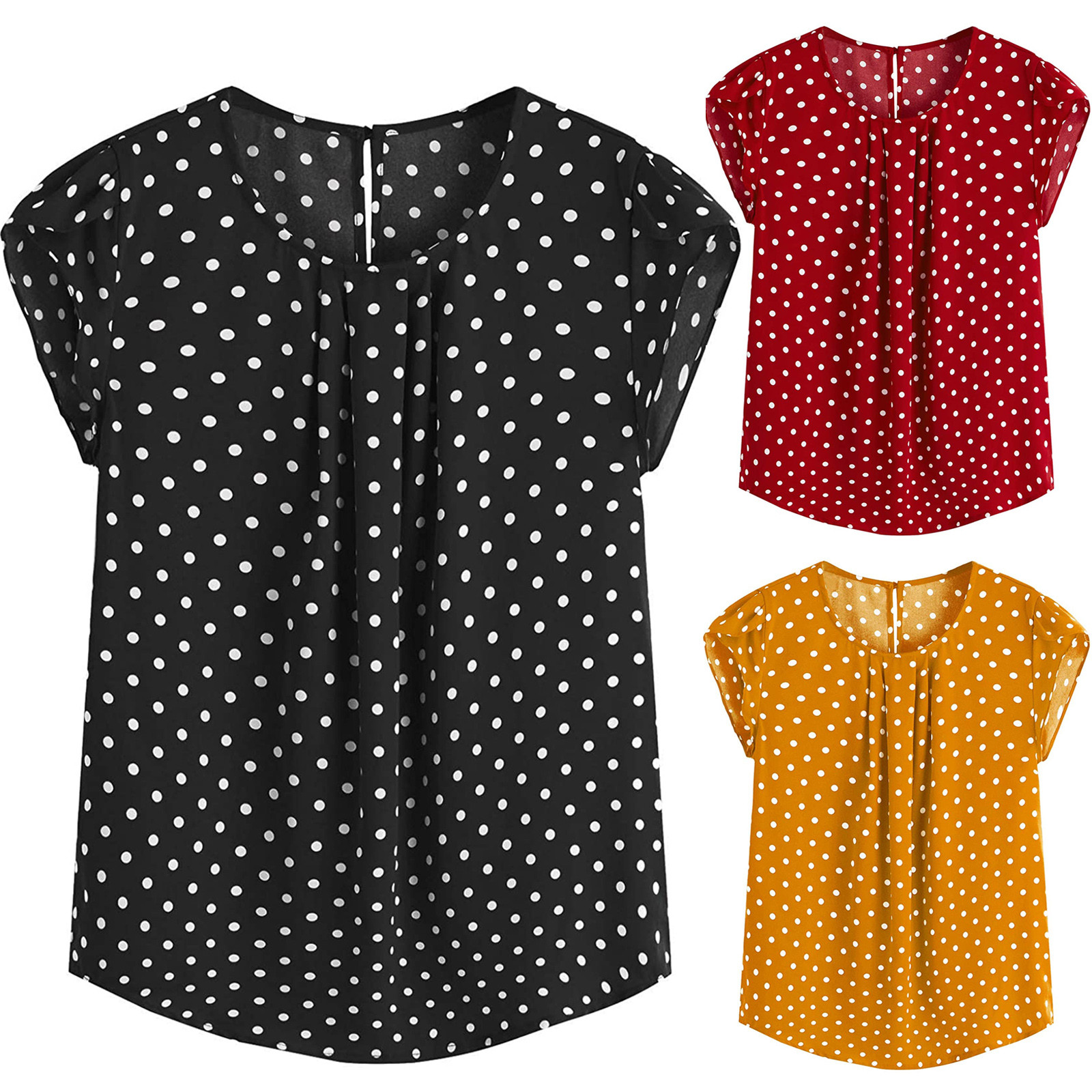 Женская Повседневная Блузка в горошек с рукавами-крылышками и пуговицами на спине