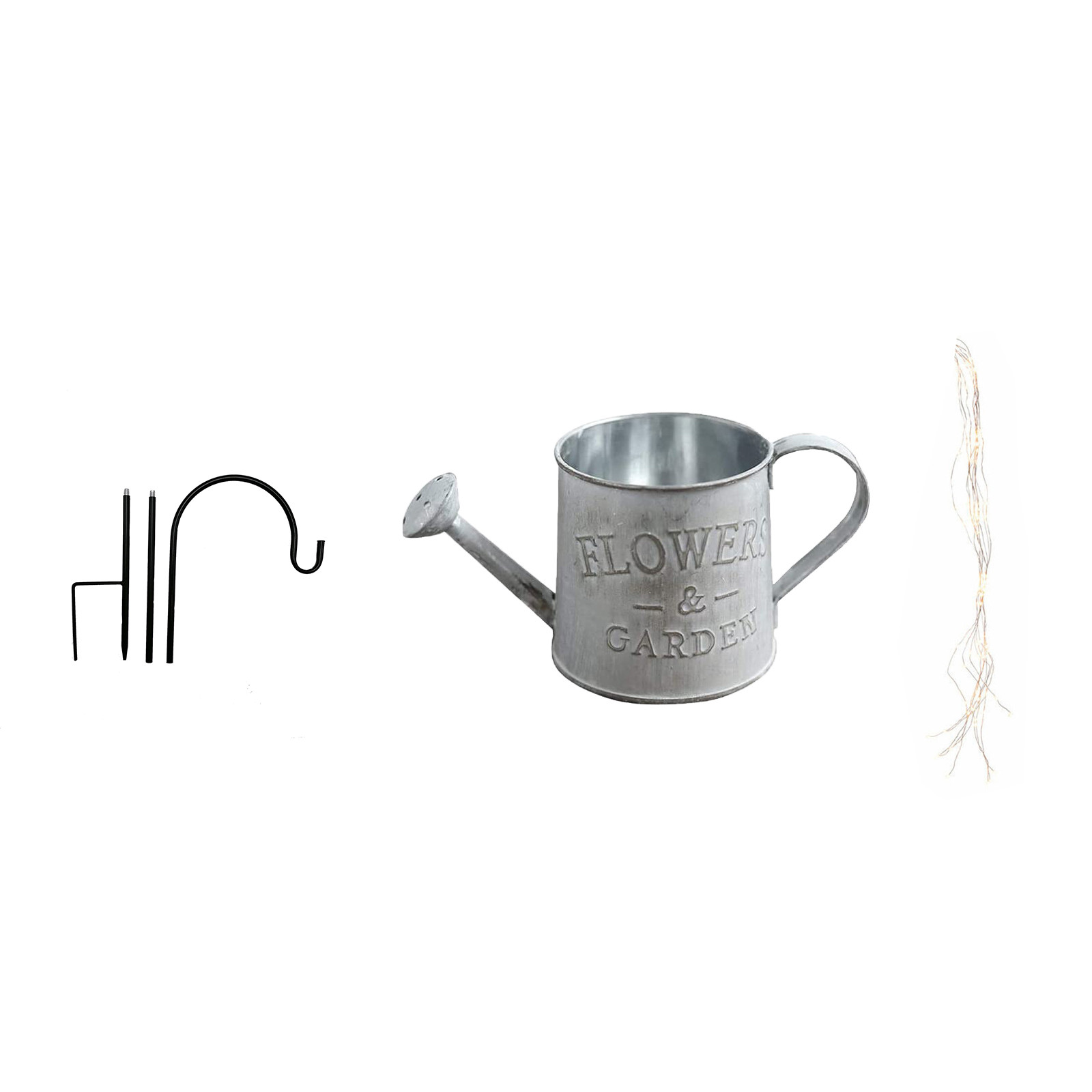 Лейка разбрызгивает ваш сад сказочным светом,Создайте уникальное фокусное место в вашем послетемном саду, открыв каскад самых маленьких огней. Встроенная кнопка питания батареи Поколение, теплые белые светодиоды microdot крепятся на деликатный провод- Слабый Бриз принесет движение, добавляя очарование. Аккумулятор остается сухим на внутреннем крючке, кронштейн может быть разобран для сборки Сталь с порошковым покрытием, провод с теплыми белыми светодиодами, пластиковый аккумулятор, электроника Защита от замерзающих температурИнформация о продукте: