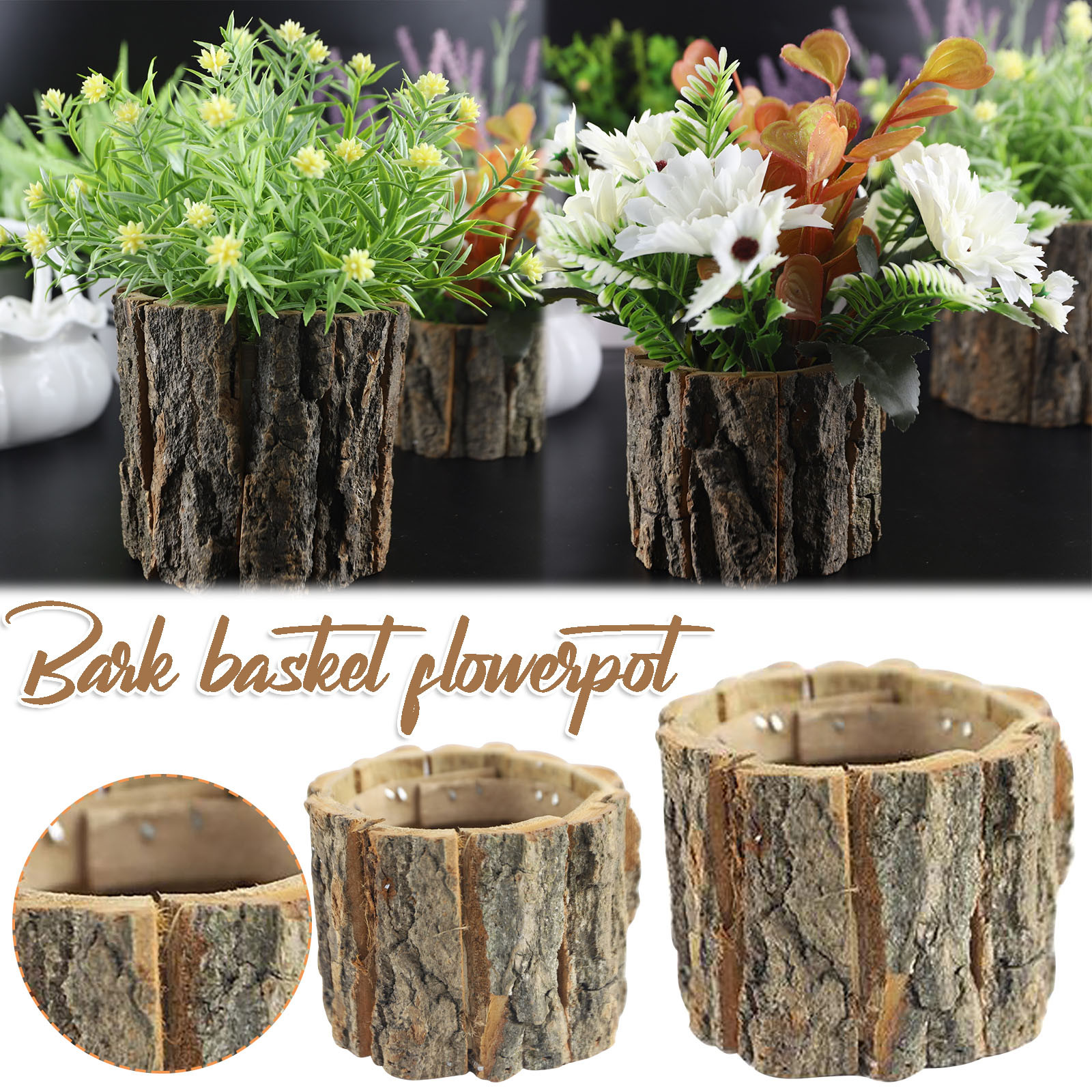 Садовые горшки, горшки, круглая корзина для коры, садовая ветряная кора, деревянная трубка, имитация растений, цветочный горшок, Кеш, горшок для растений