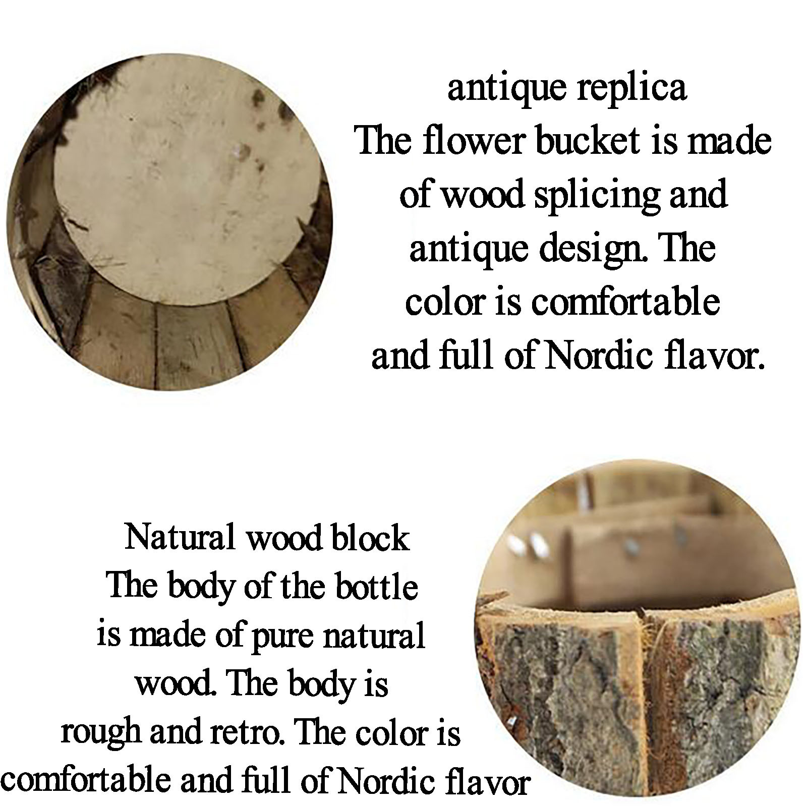 Цветочное ведро изготовлено из дерева и античного дизайна. Цвет удобный и насыщенный.