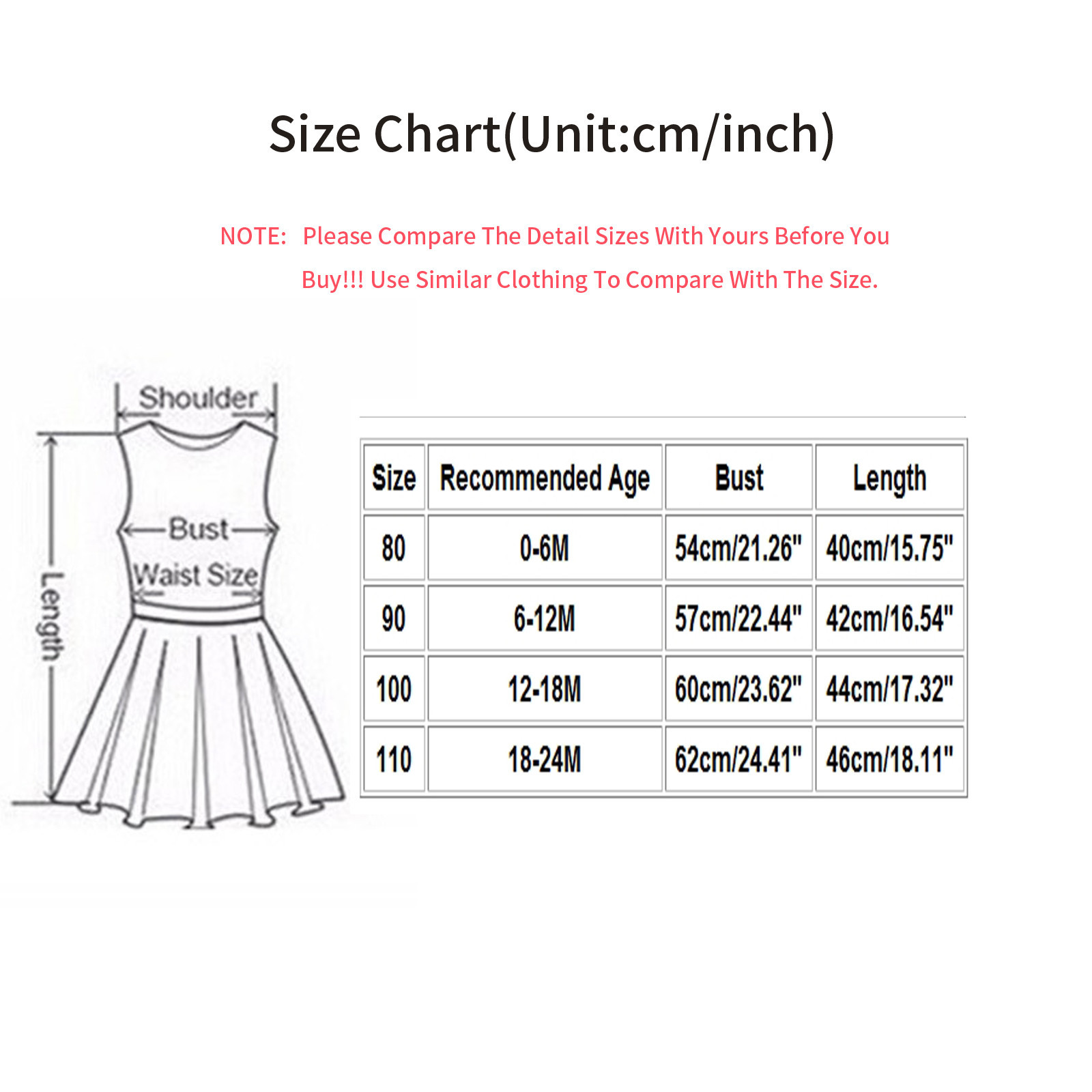 Размеры Рекомендуемый возраст Бюст Длина 80 0-6 м 54 см/21,26'' 40 см/15,75'' 90 6-12 м 56 см/22,05'' 42,5 см/16,73'' 100 12-18 м 58 см/22,83'' 45 см/17,72'' 110 18-24 м 60 см/23,62'' 47,5 см/18,70''Очень нужная вещь в каждом доме. заказала себе 3 штуки, так как у нас очень много лекарств дома и они... Читать отзыв полностью...