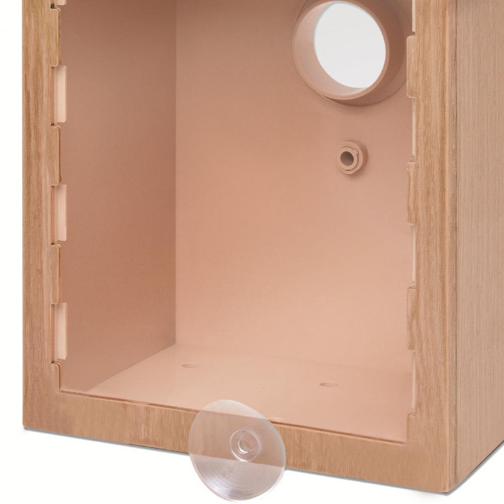 Благодаря присоске и одностороннему дизайну, три мощных присоски могут сделать птичий домик прочно всасываемым на стекле, и его легко установить, кроме того, вы можете непосредственно наблюдать за ситуацией внутри птичьего дома.