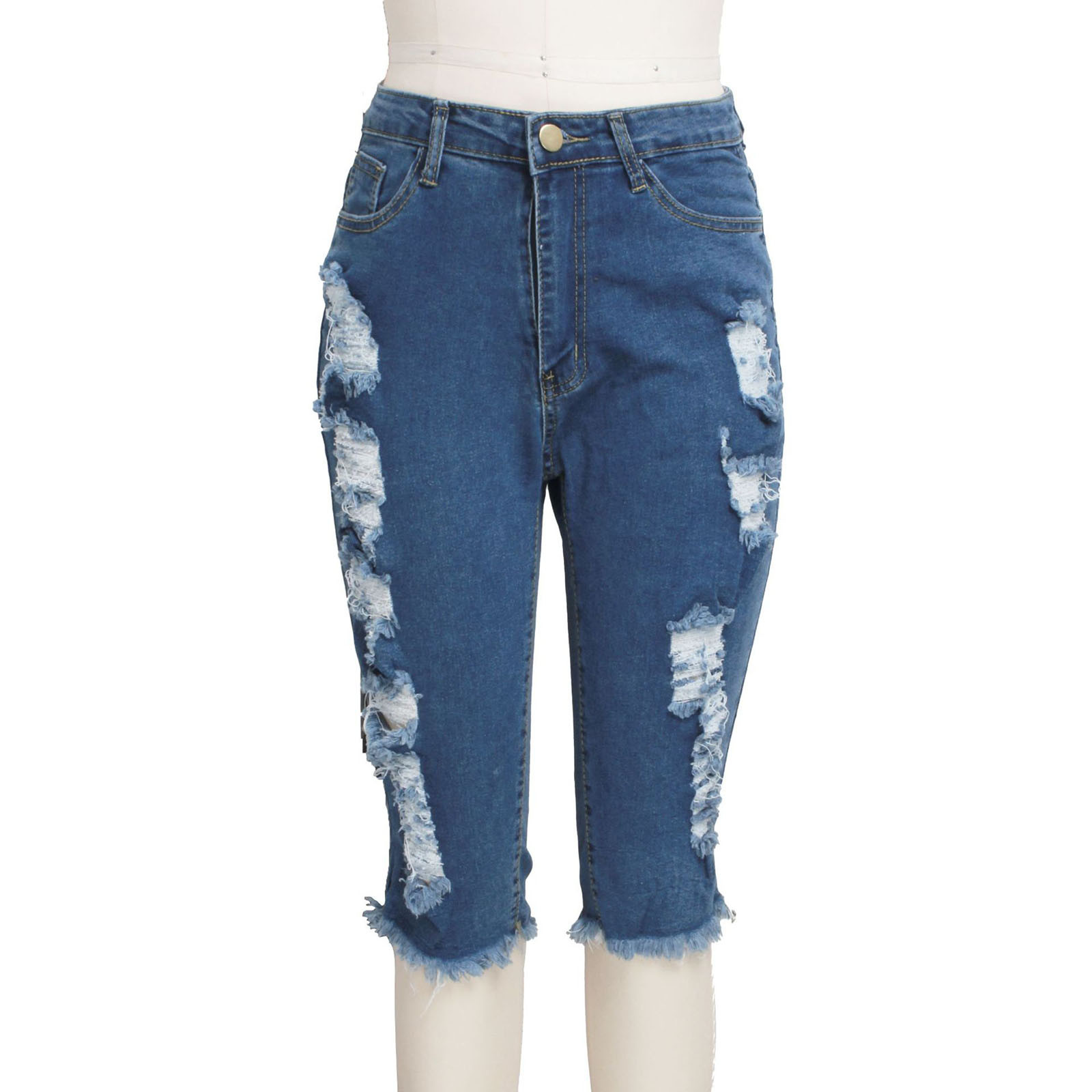 Женские Модные потертые джинсы-капри с высокой талией