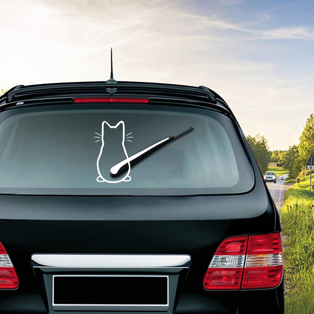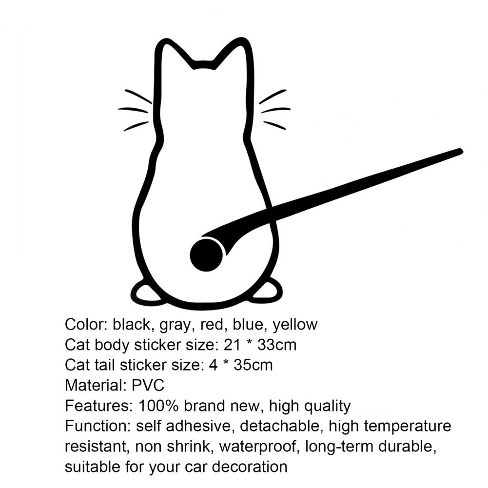 Длина наклейки с изображением кота составляет 33 см, а ширина-21 см. Длина наклейки с изображением кошачьего хвоста составляет 35 см, а ширина-4 см.