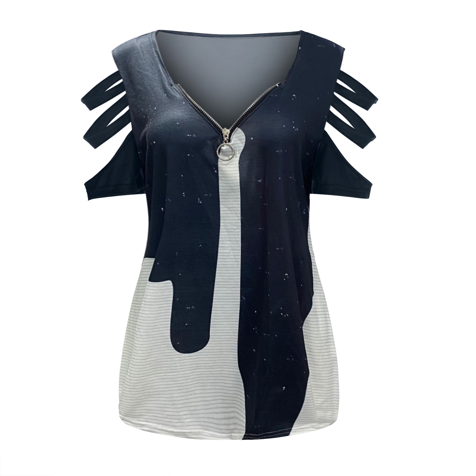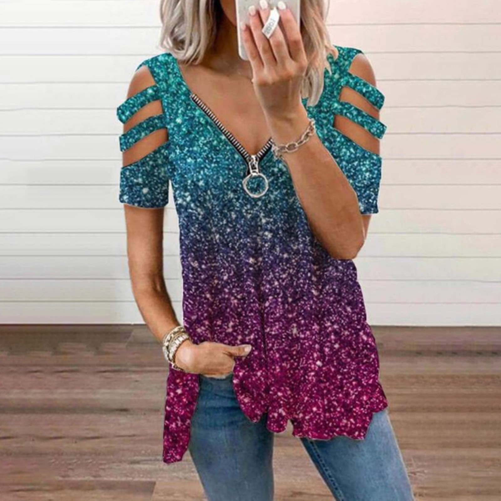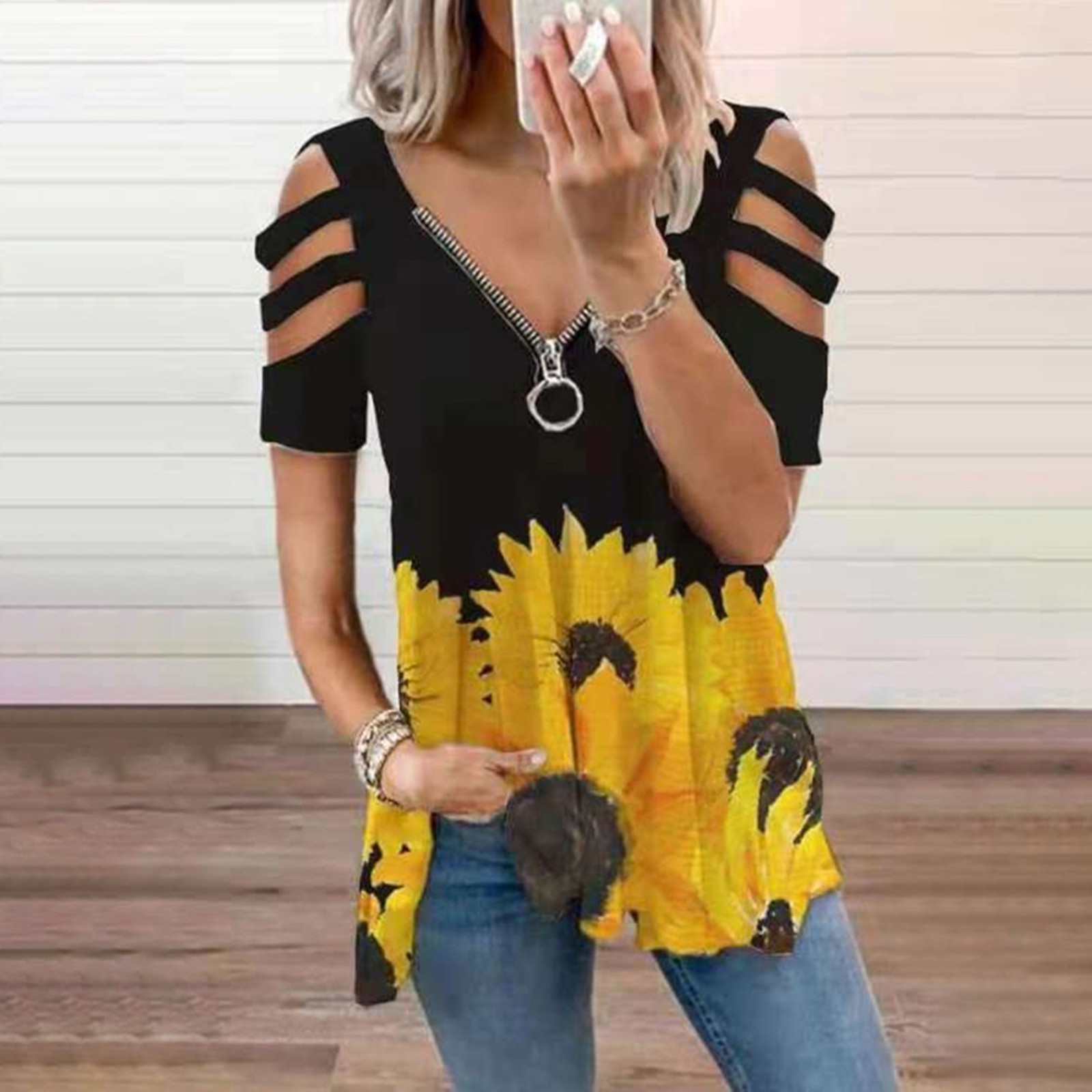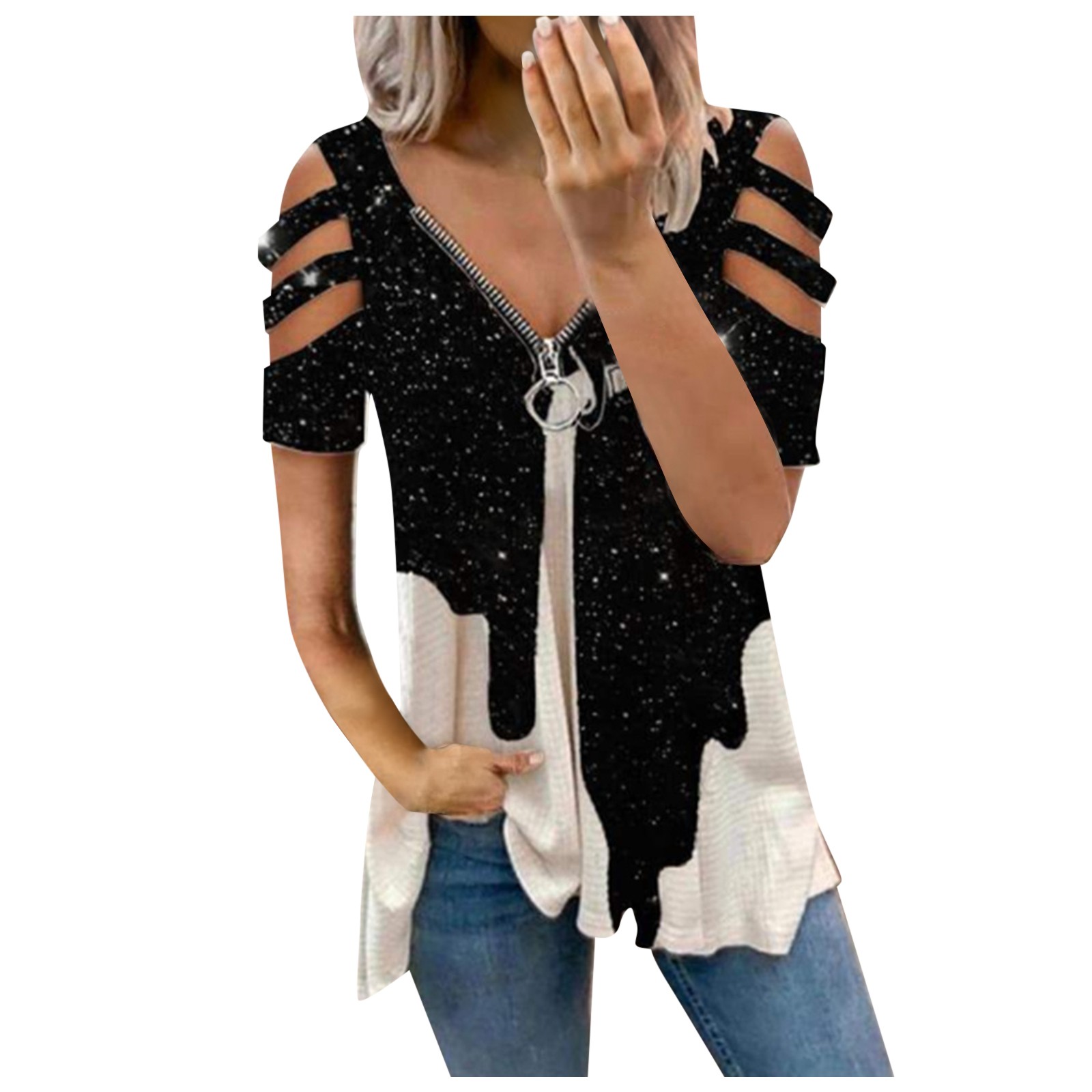 Женская Сексуальная Повседневная Блузка с v-образным вырезом на молнии с коротким рукавом