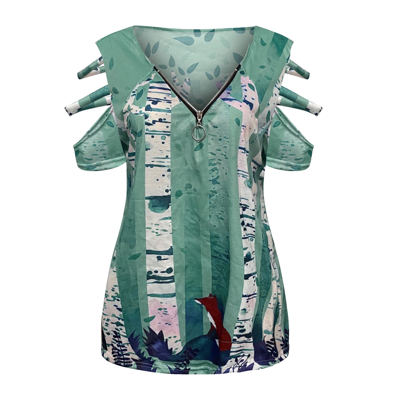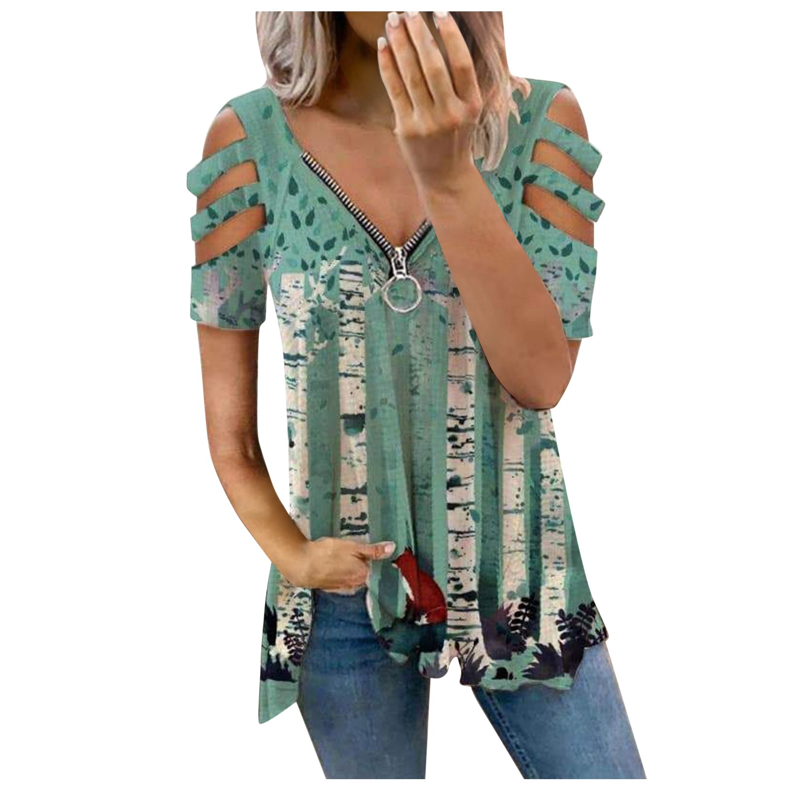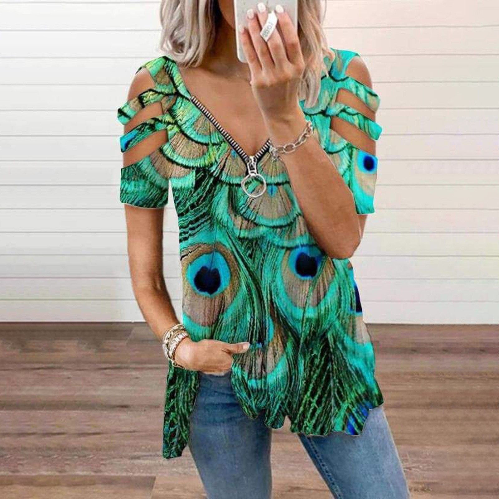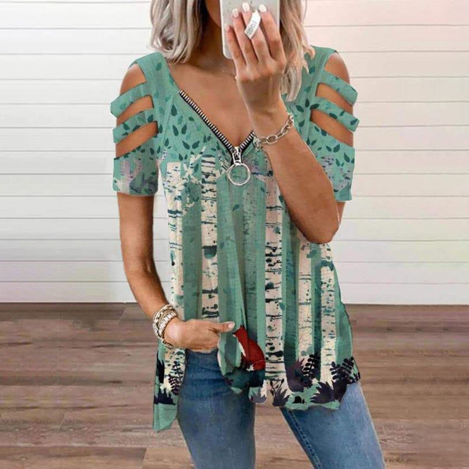 Женская Сексуальная Повседневная Блузка с v-образным вырезом на молнии с коротким рукавом
