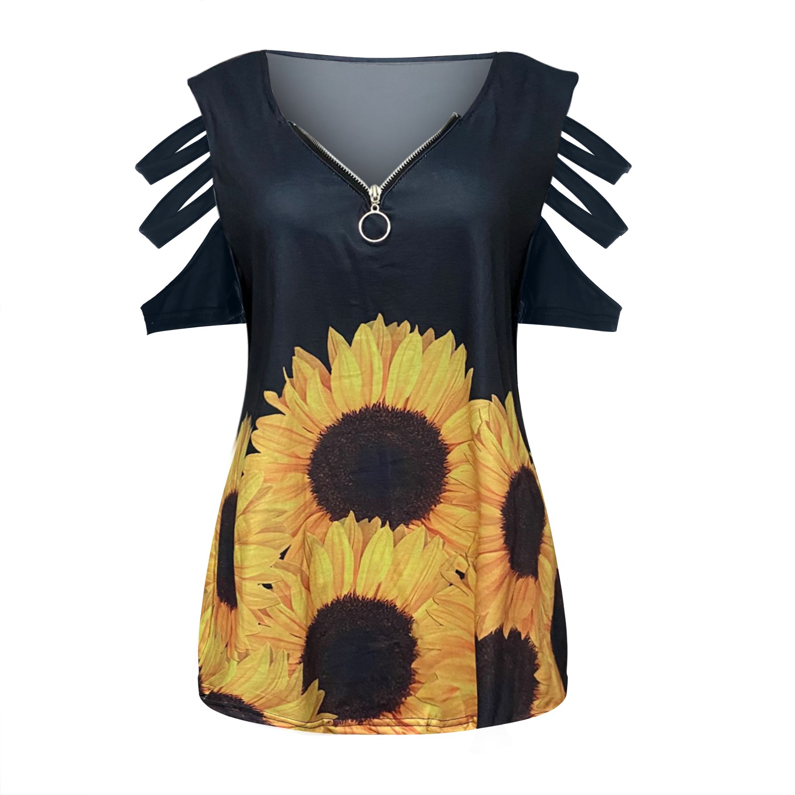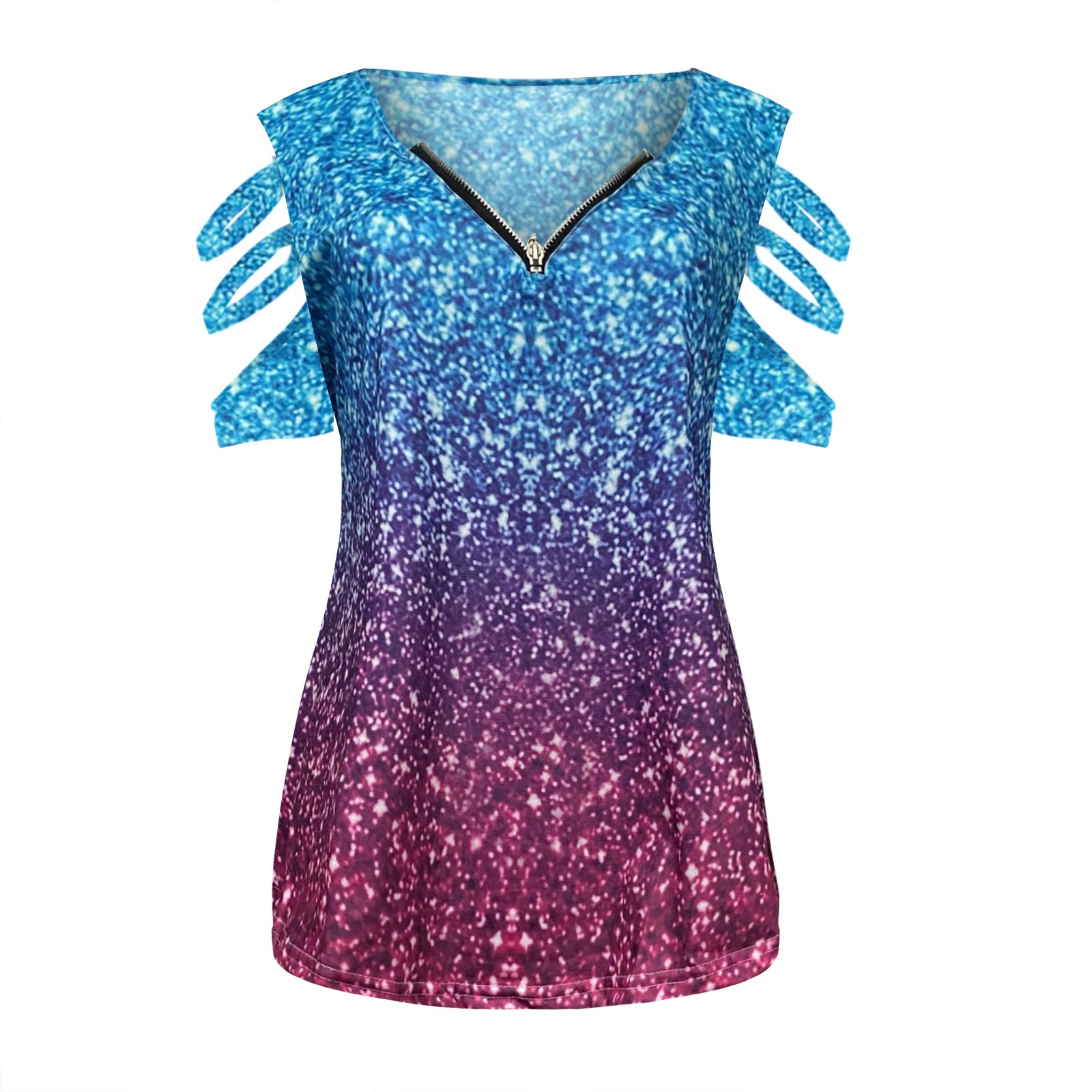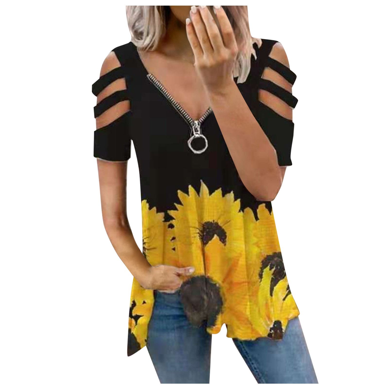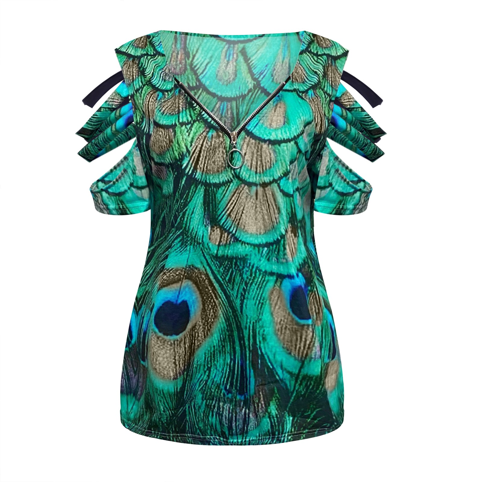 Женская Сексуальная Повседневная Блузка с v-образным вырезом на молнии с коротким рукавом