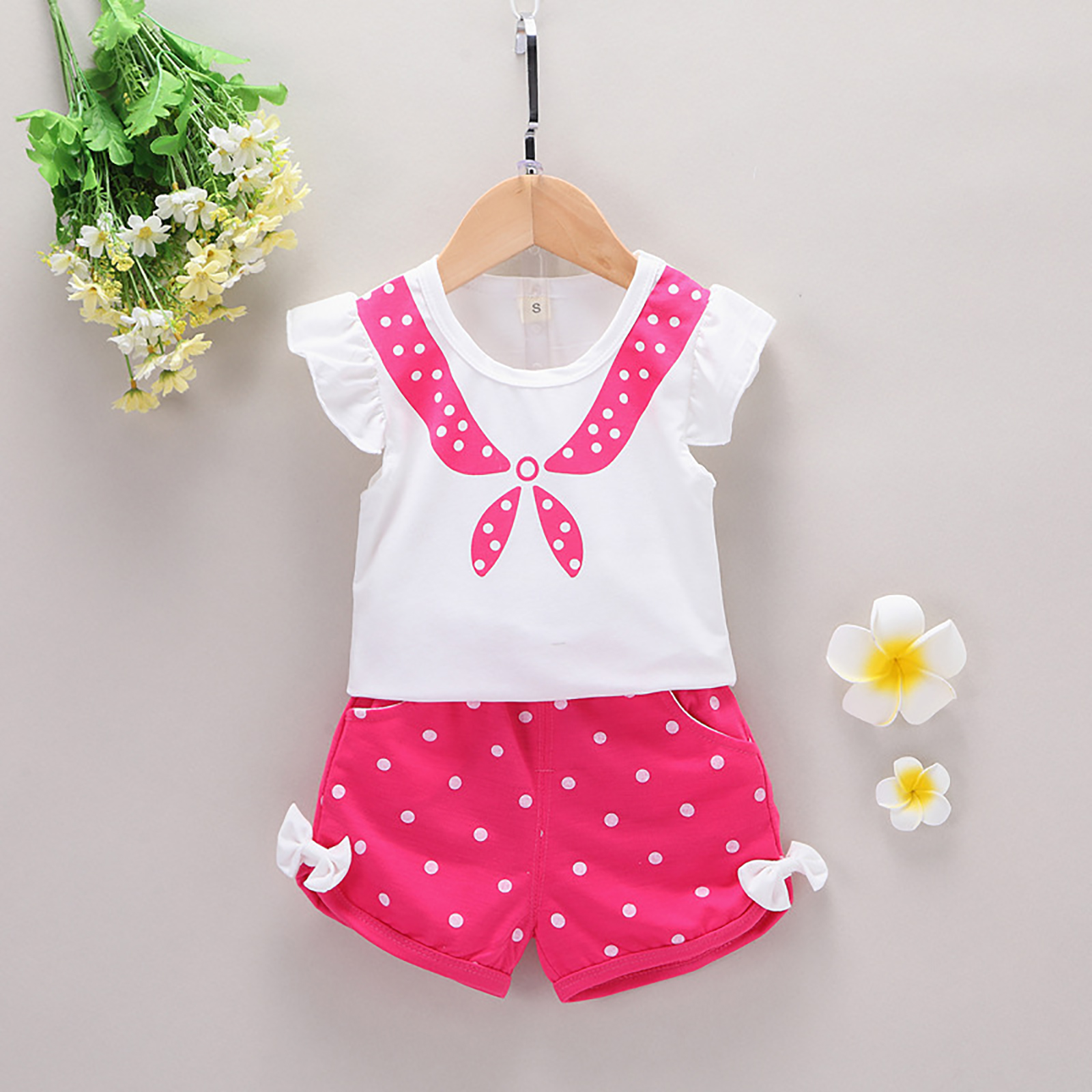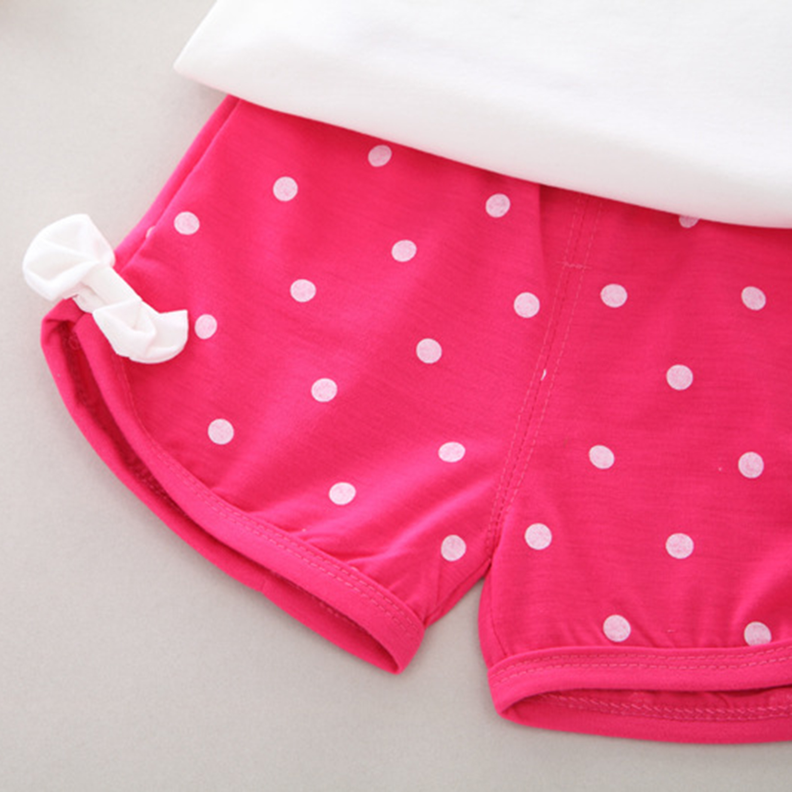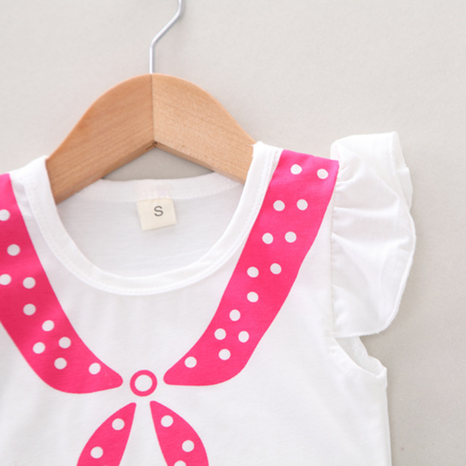 Комплект летней одежды для маленьких девочек; Топ с оборками и рукавами-крылышками, круглым вырезом и милым принтом с героями мультфильмов; Комплект с шортами в горошек.