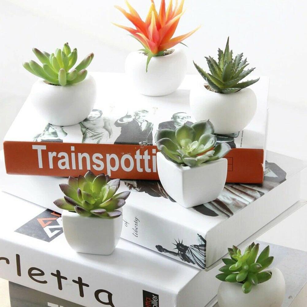 Магниты на холодильник искусственный; В горшке набор зеленых сочных растений бонсай
