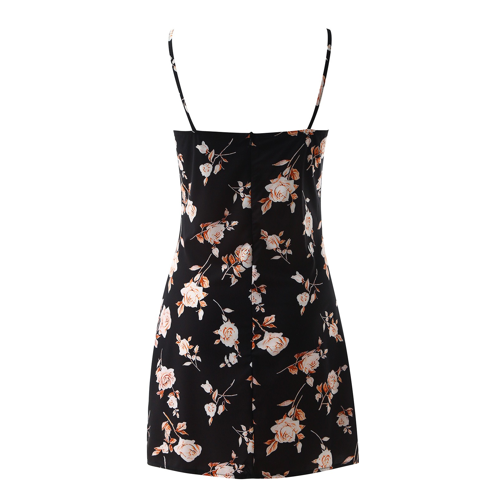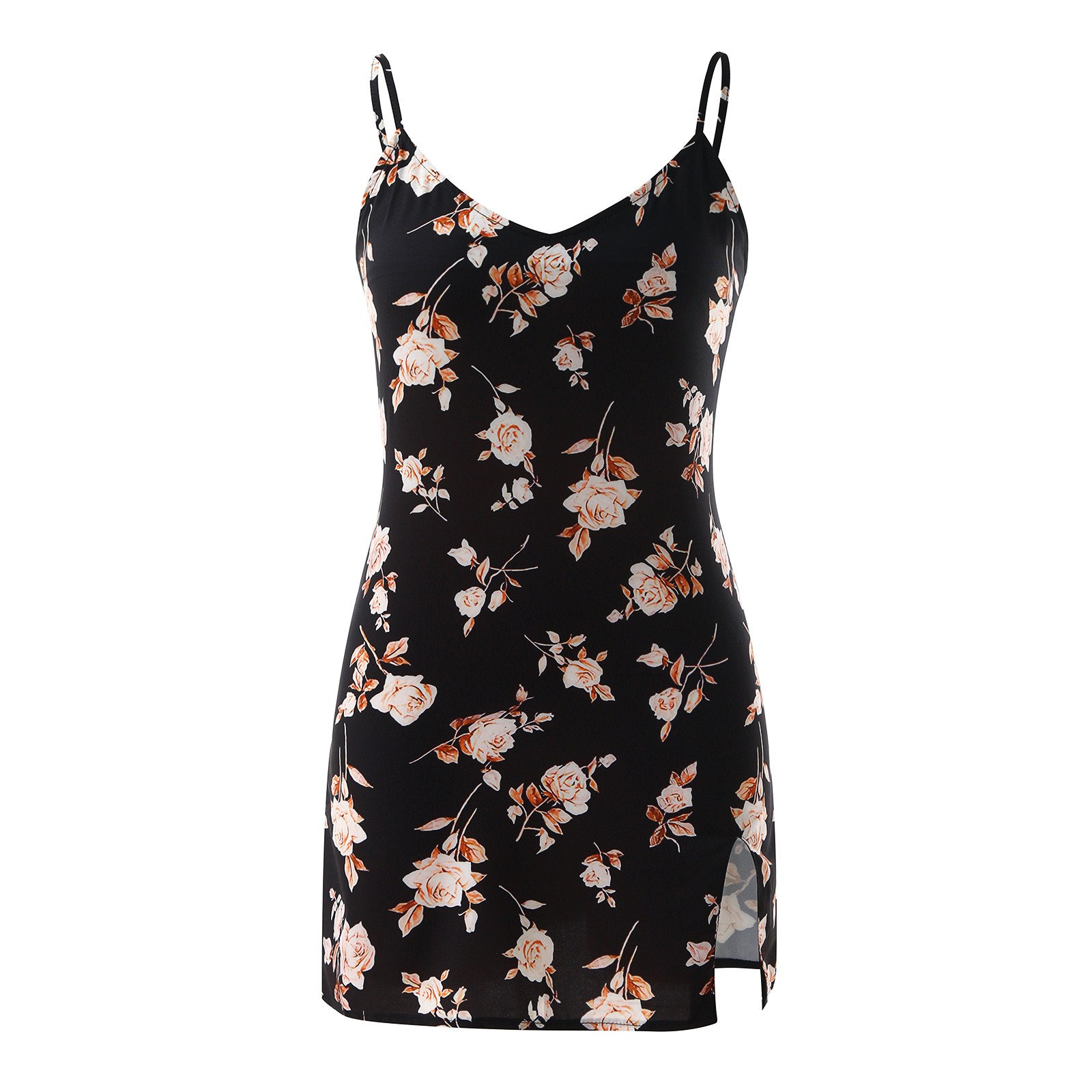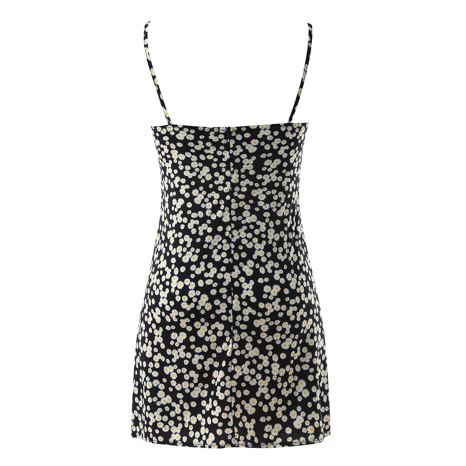 【Особенности】: V-образный вырез, без рукавов, принт, мини-платье