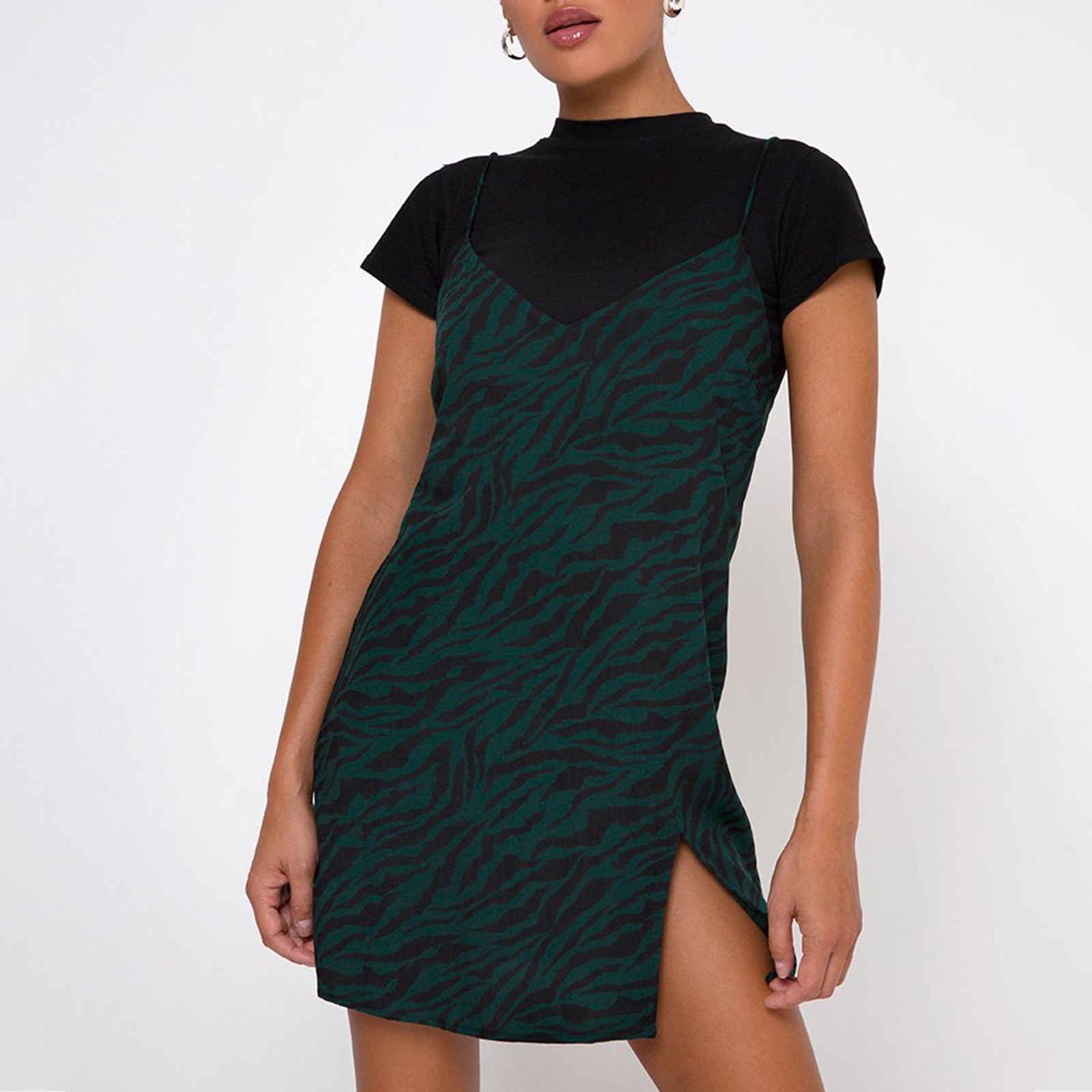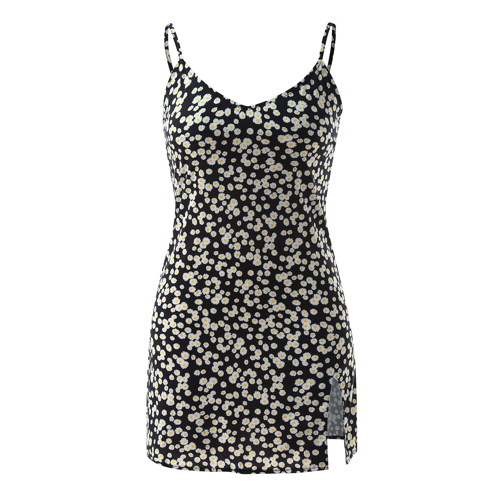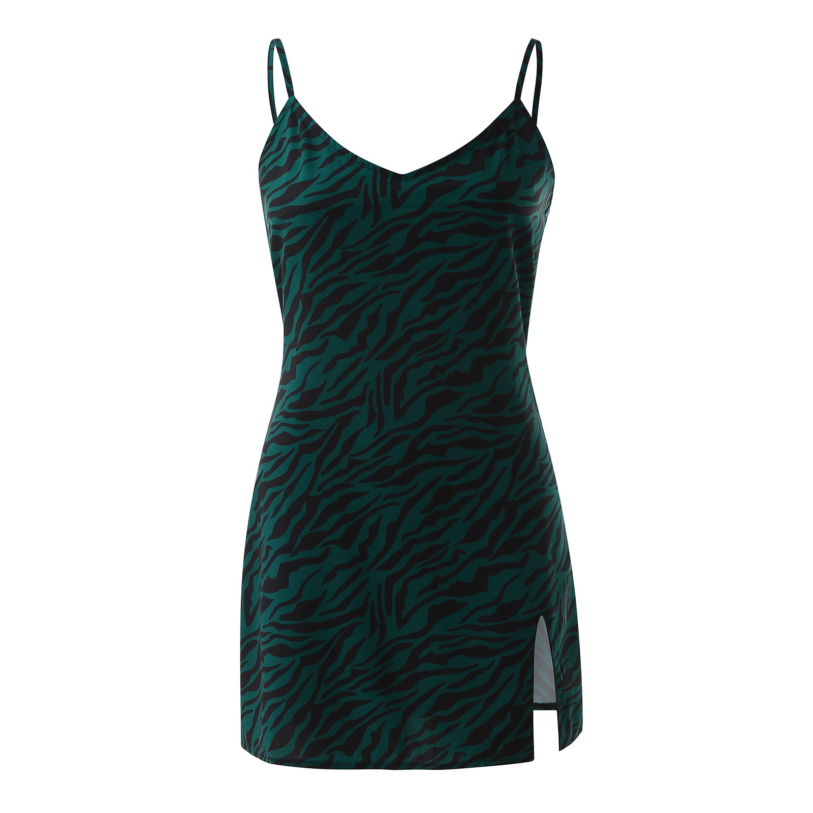 【Особенности】: V-образный вырез, без рукавов, принт, мини-платье