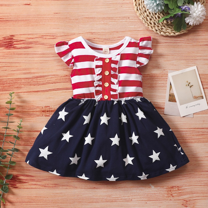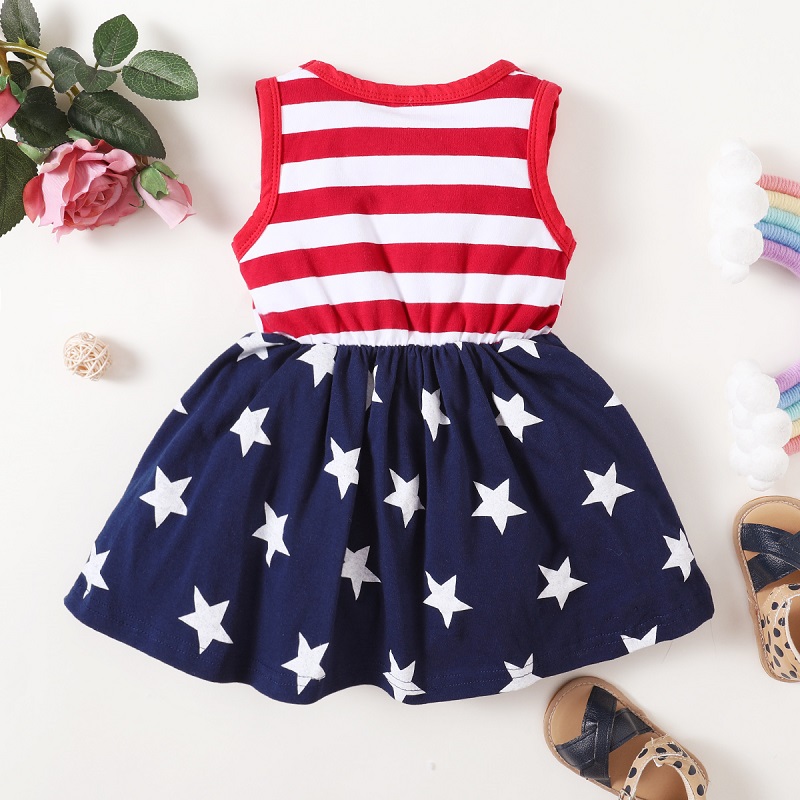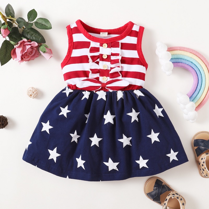 От 1 до 5 лет для маленьких девочек; Подарок на день независимости; Платье в полоску со звездами; Вечерние праздничные летние платья