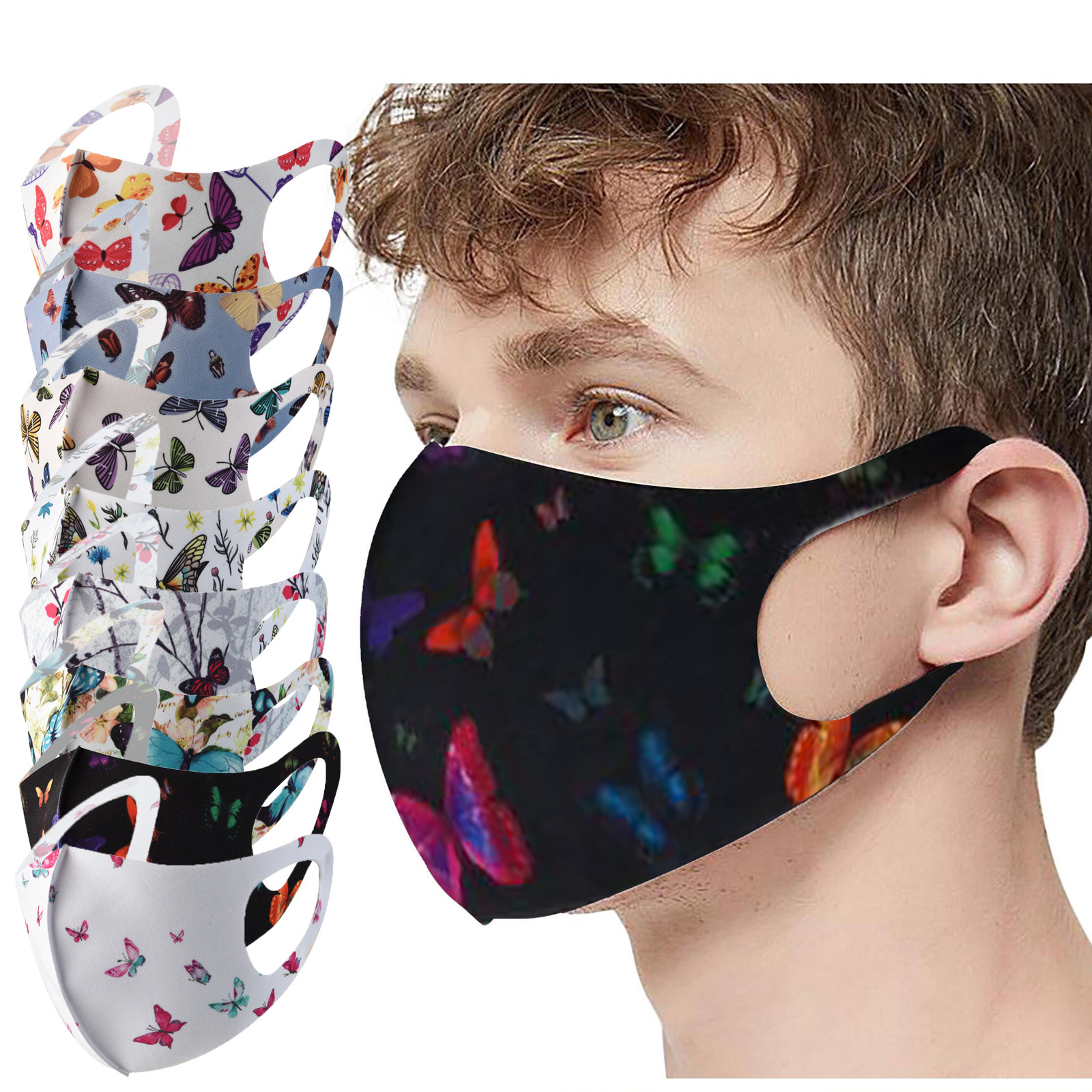 Модная маска с принтом бабочки дышащая маска из ледяного шелка