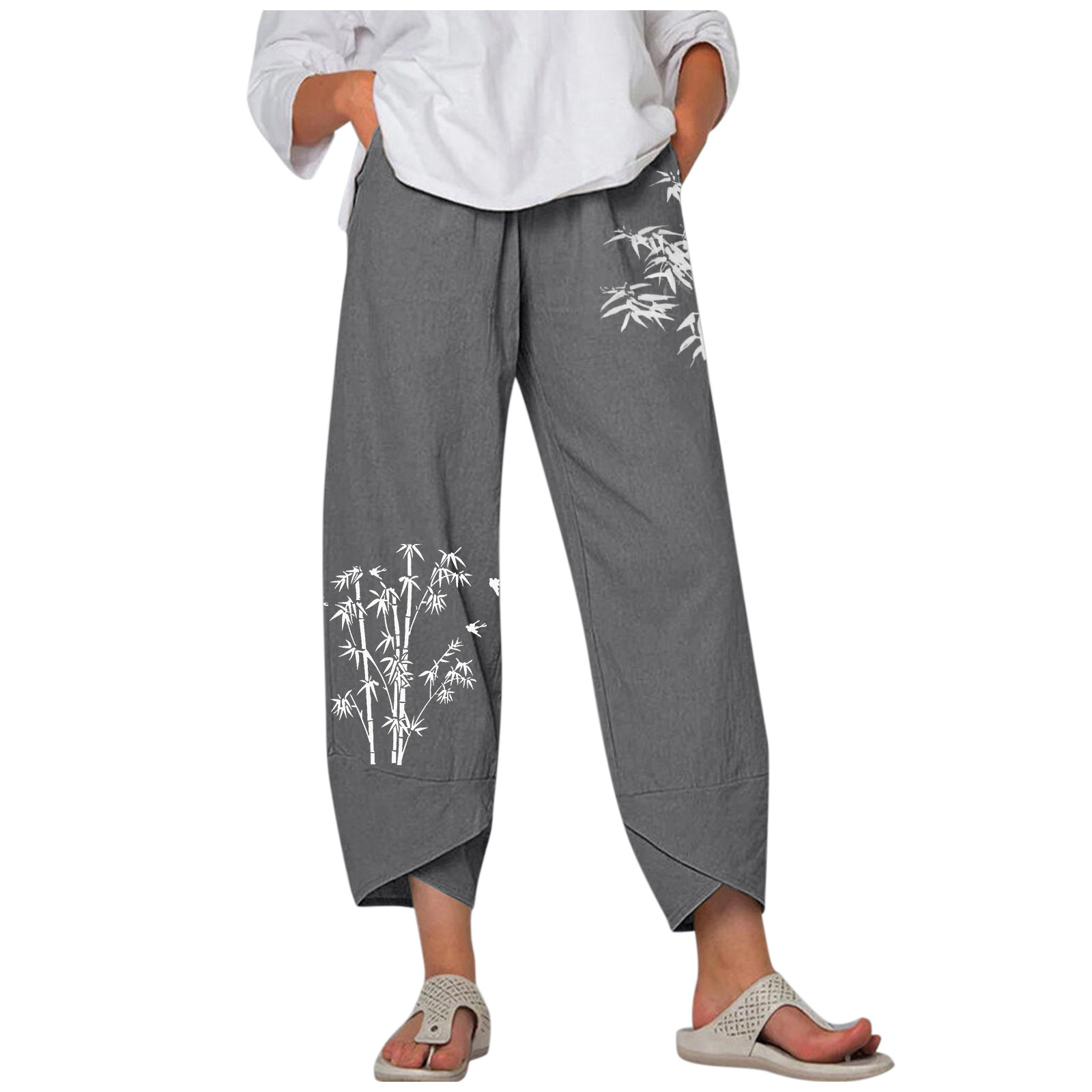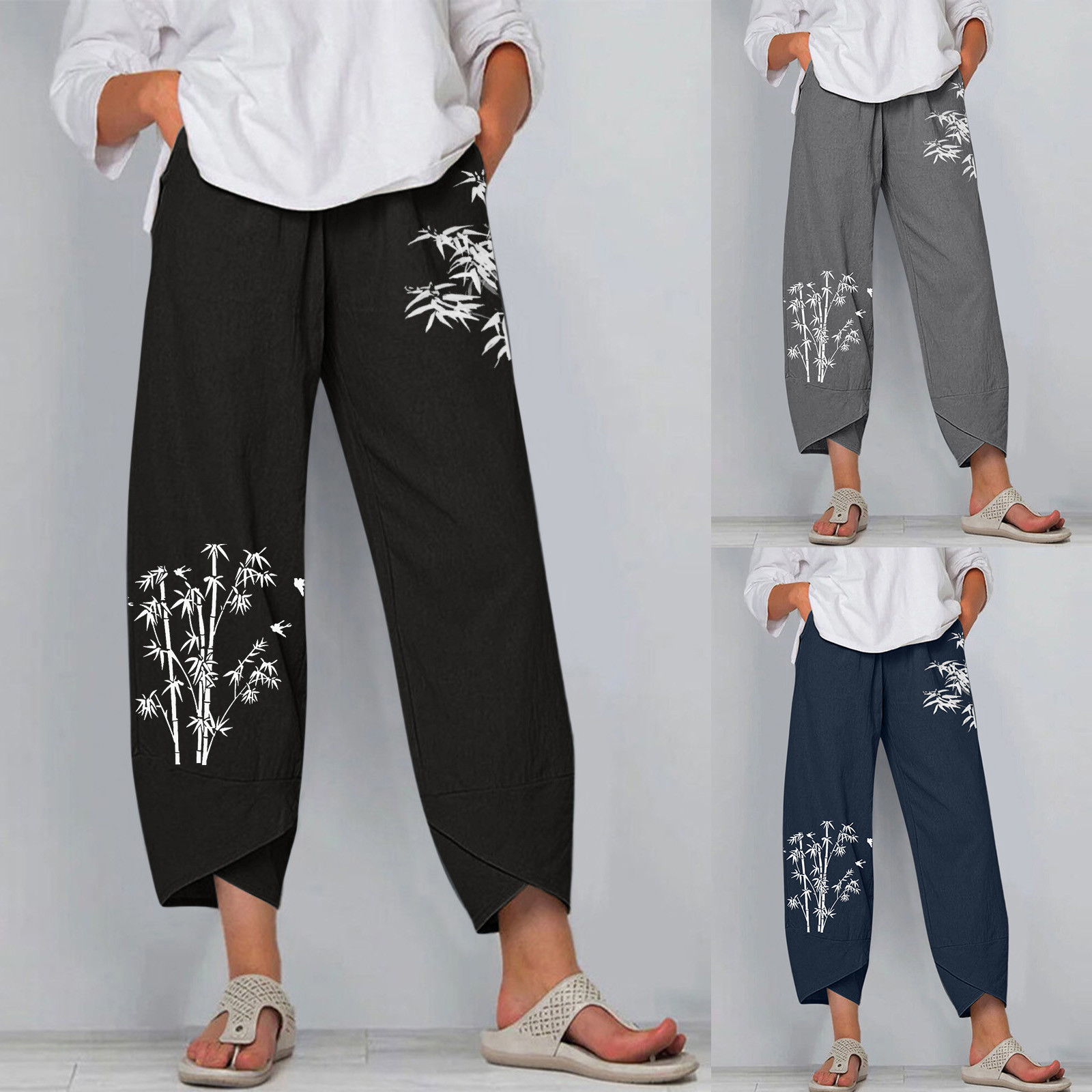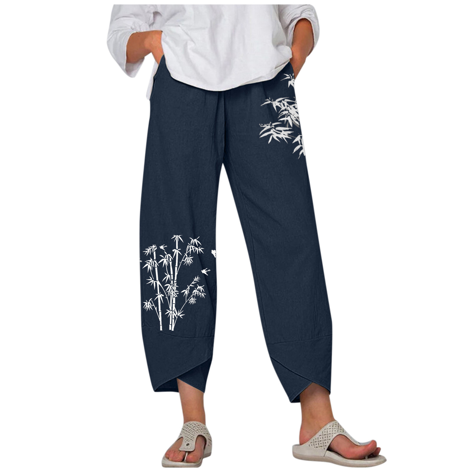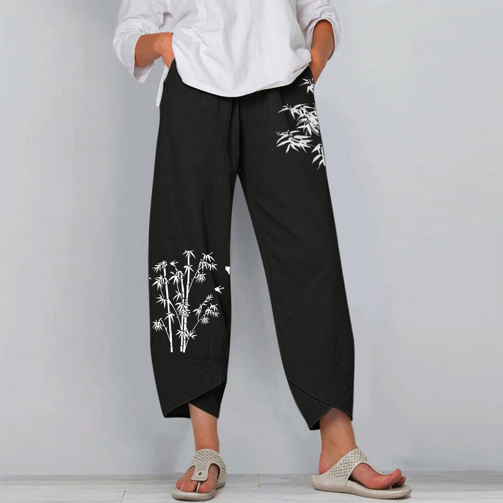 Женские повседневные широкие брюки с цветочным принтом и эластичной резинкой на талии
