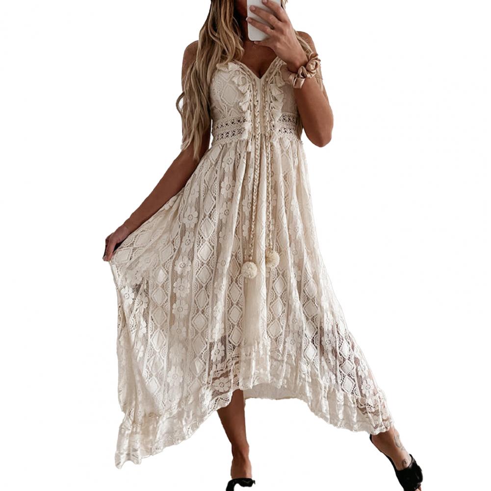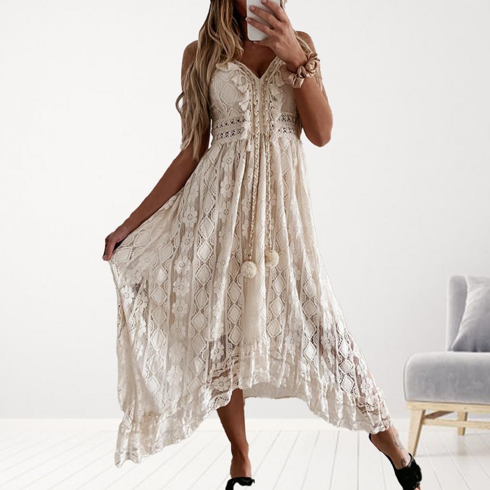 Кружевной дизайн этого Макси-платья очень красивый и модный.
