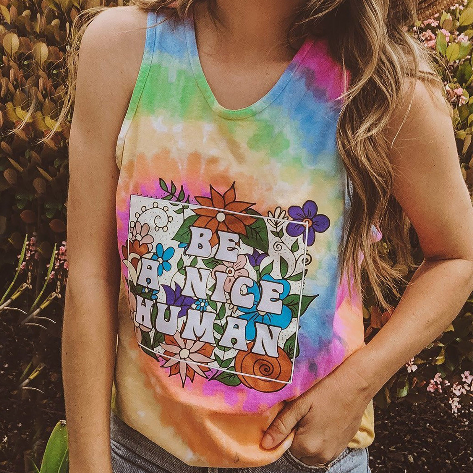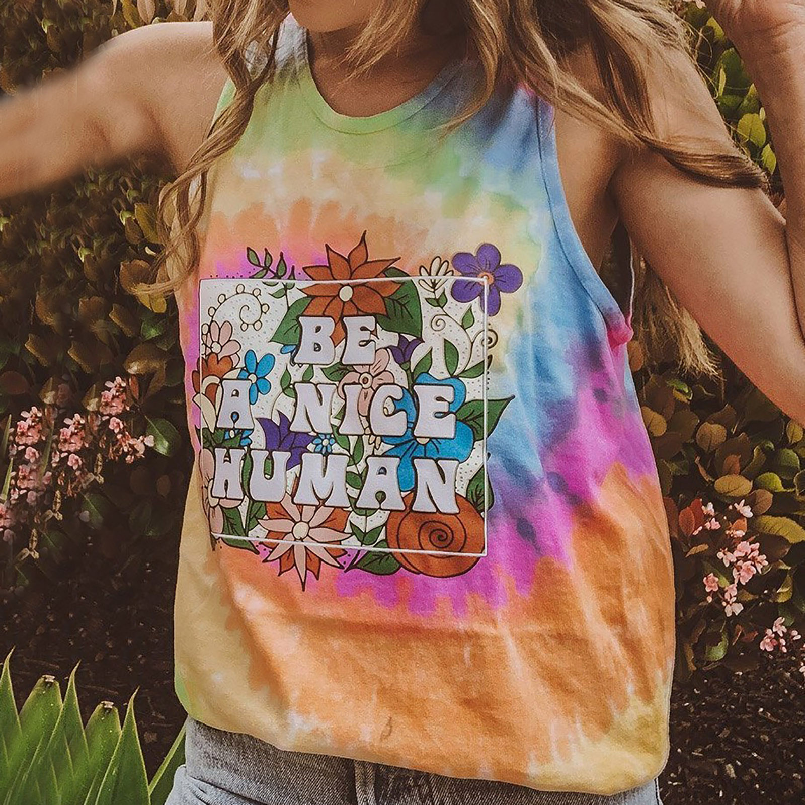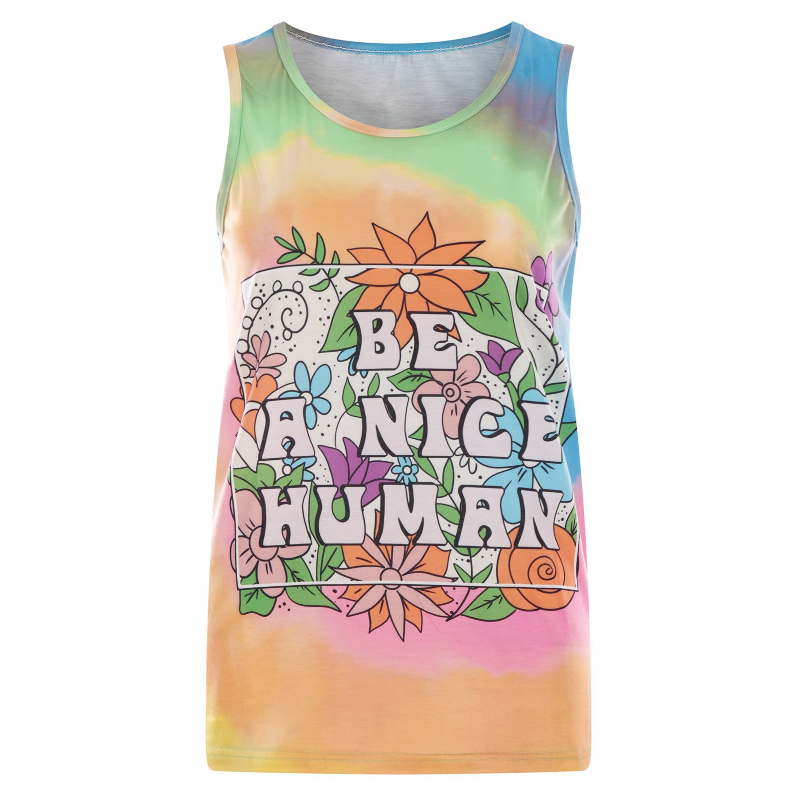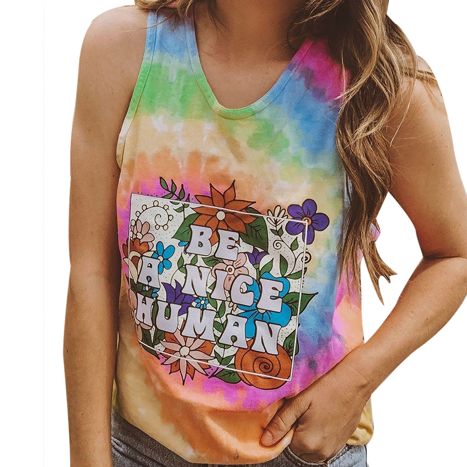 Новые женские повседневные топы без рукавов с круглым вырезом и принтом красителя