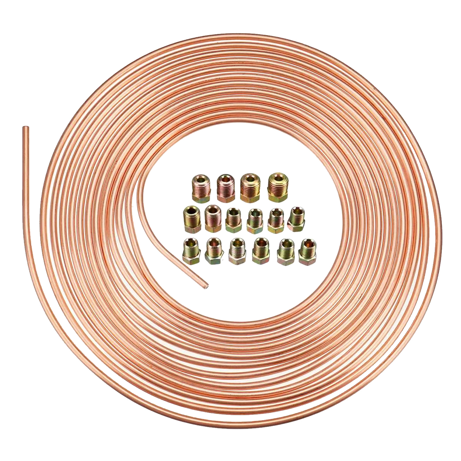Высококачественная катушка рулонной трубки 7,62 м с наружным диаметром 3/16 дюйма, медная никелевая Тормозная труба, шланг трубопровод, труба, антикоррозийная трубка с гайкой 16 шт.
