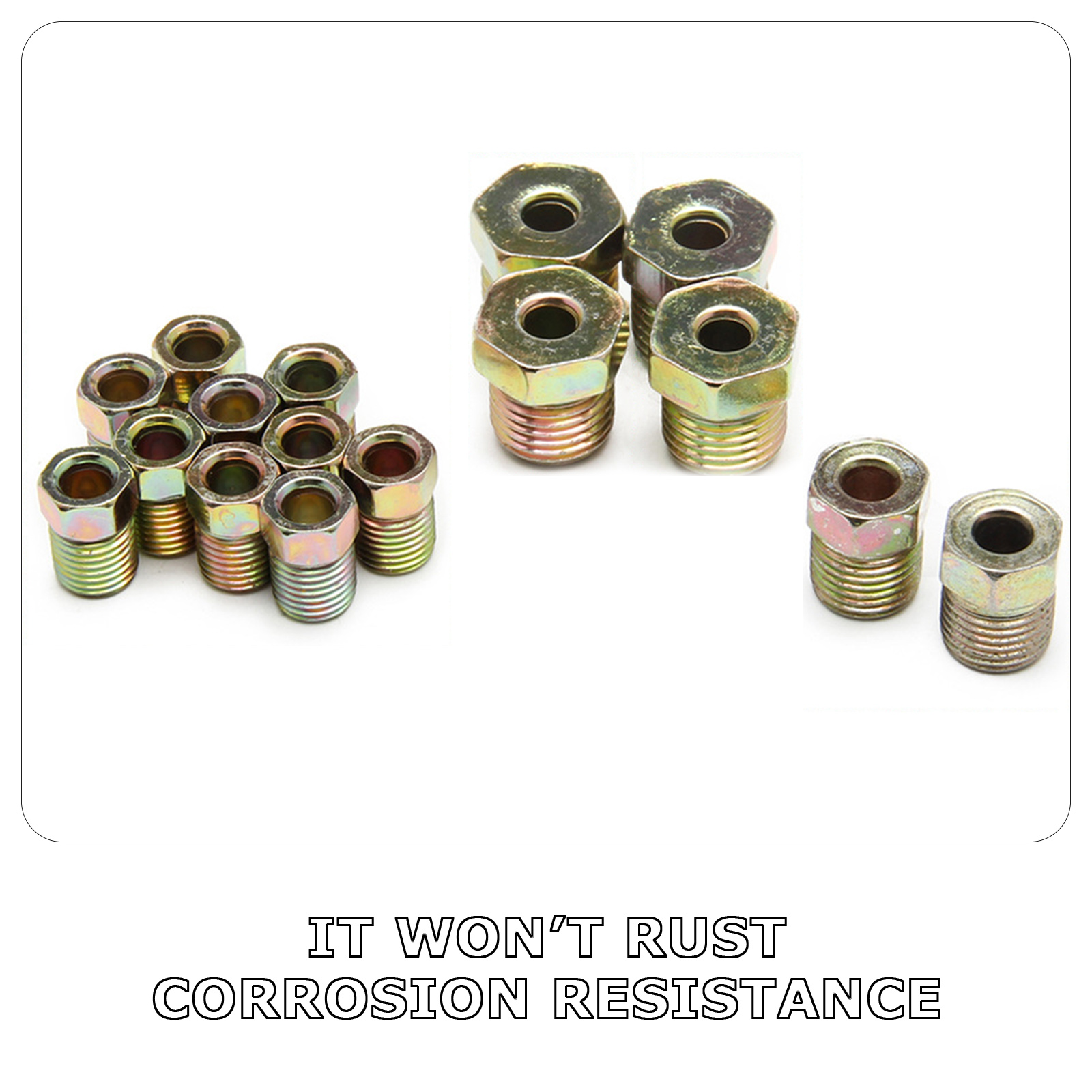 В комплект входит 25-футовый рулон трубки тормозной магистрали с покрытием 3/16 дюйма и большой ассортимент наиболее распространенных фитингов тормозной магистрали SAE.
