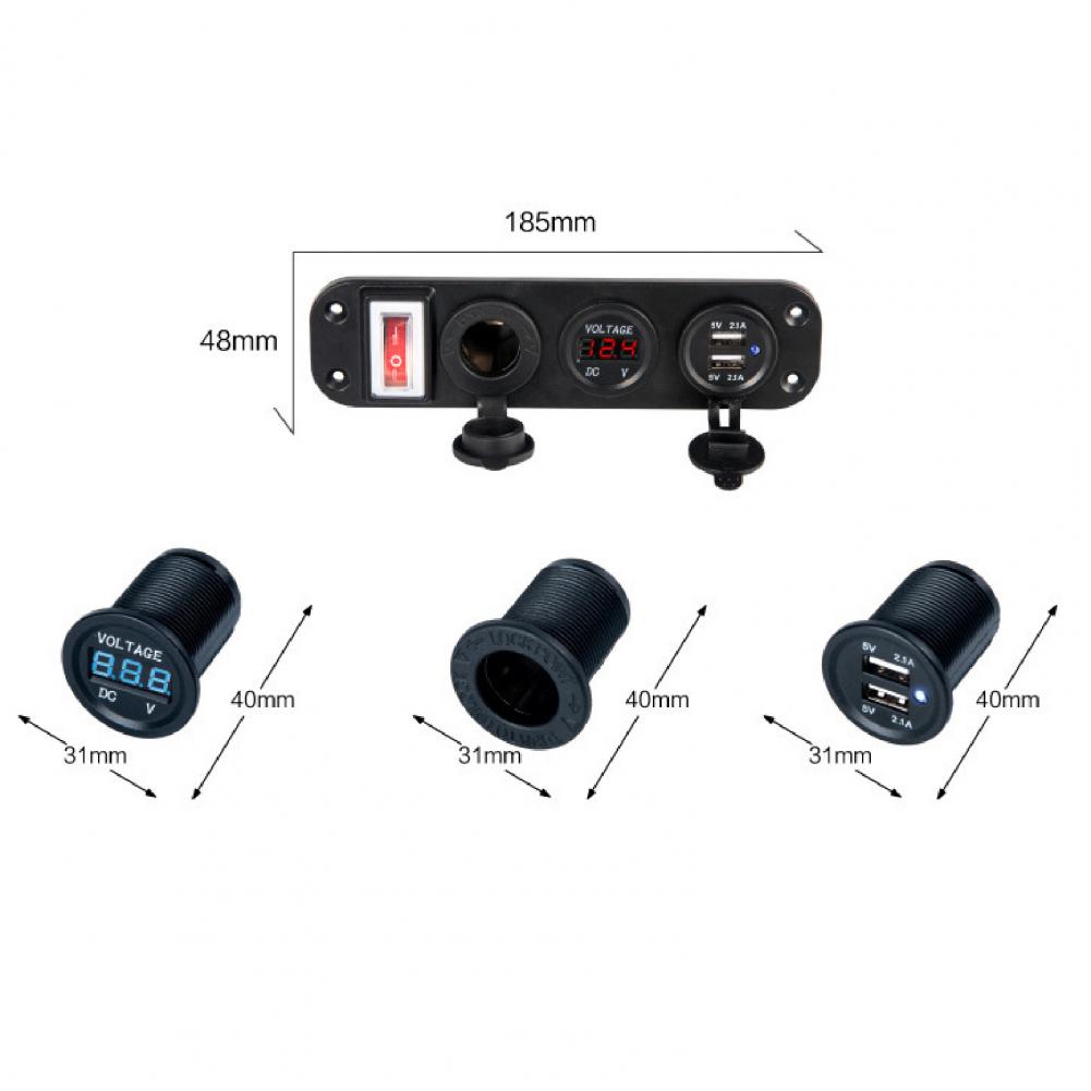 Длина изделия составляет 18,5 см, ширина 4,8 см, высота 5 см. Двойная usb-розетка обеспечивает быструю зарядку 5 В/4,2 А.