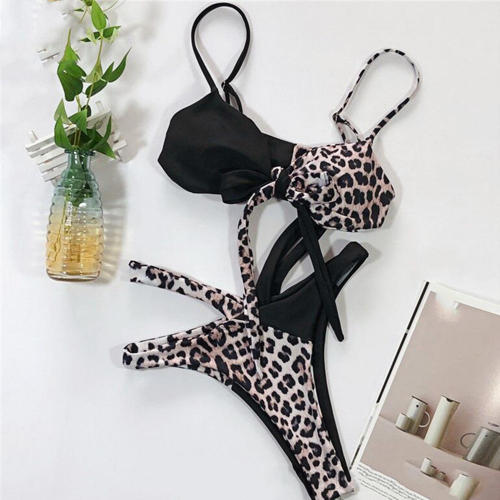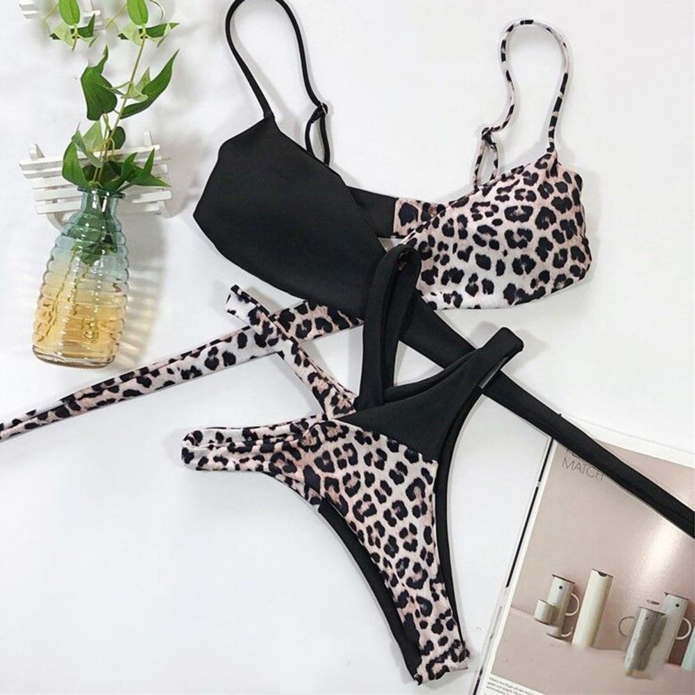 Этот летний комплект бикини с леопардовым принтом и перекрестной лентой очень пикантный и модный.