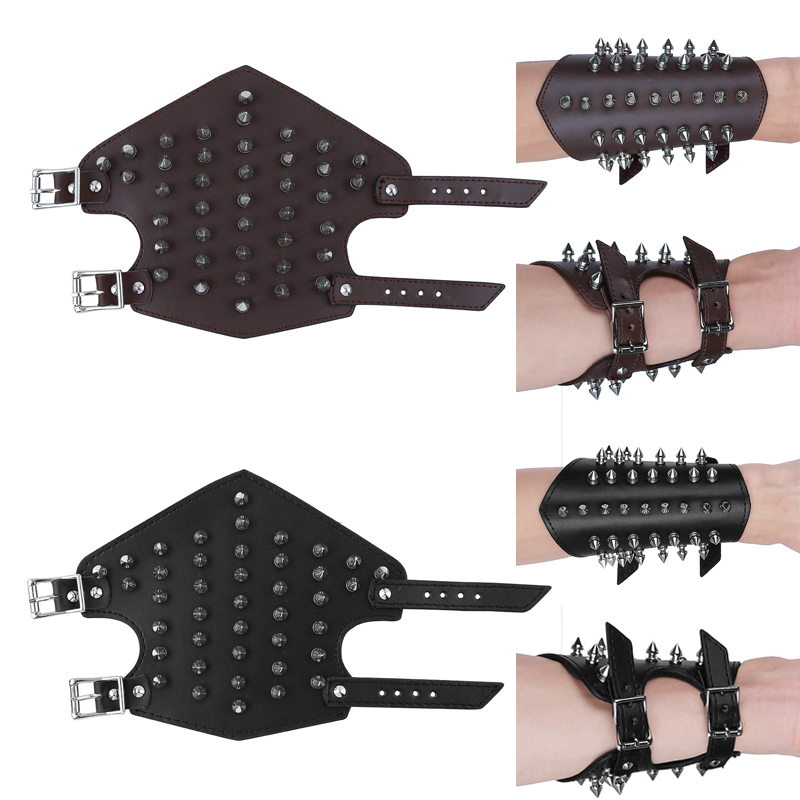 Унисекс из искусственной кожи металлический Спайк Gauntlet стимпанк рыцарь браслет винтажный средневековый браслет косплей костюм на Хеллоуин Arm Armor
