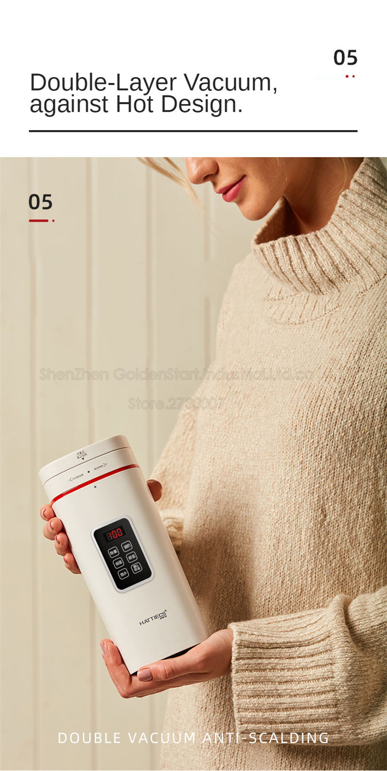 ● Двойная Вакуумная конструкция, изоляция и защита от ожогов;