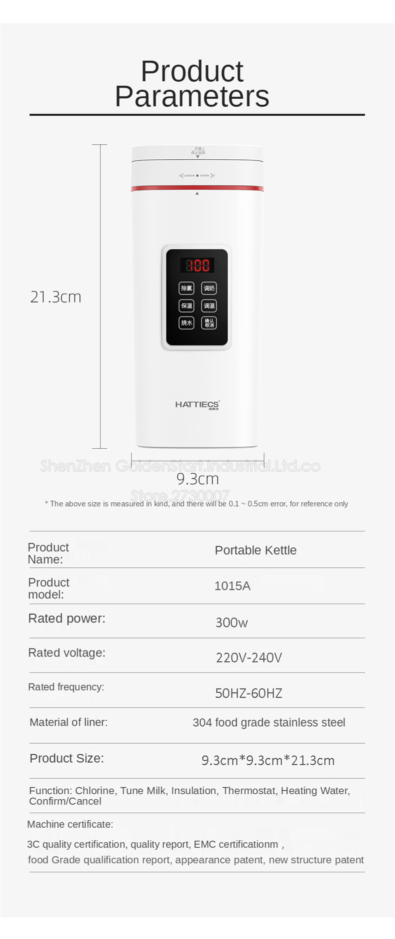 Размер изделия: 9,3 см * 9,3 см * 21,3 см