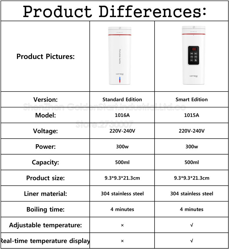 ● Умная версия электрического чайника может установить температуру, стандартная версия не может установить температуру.