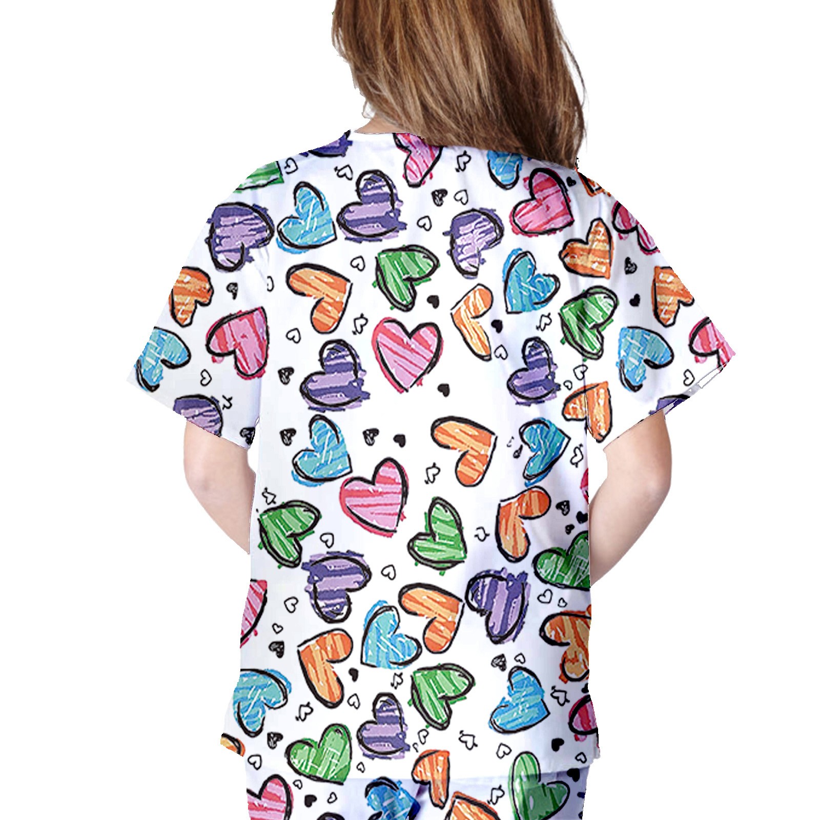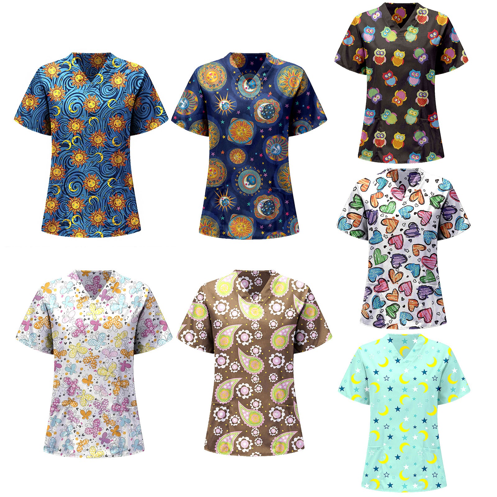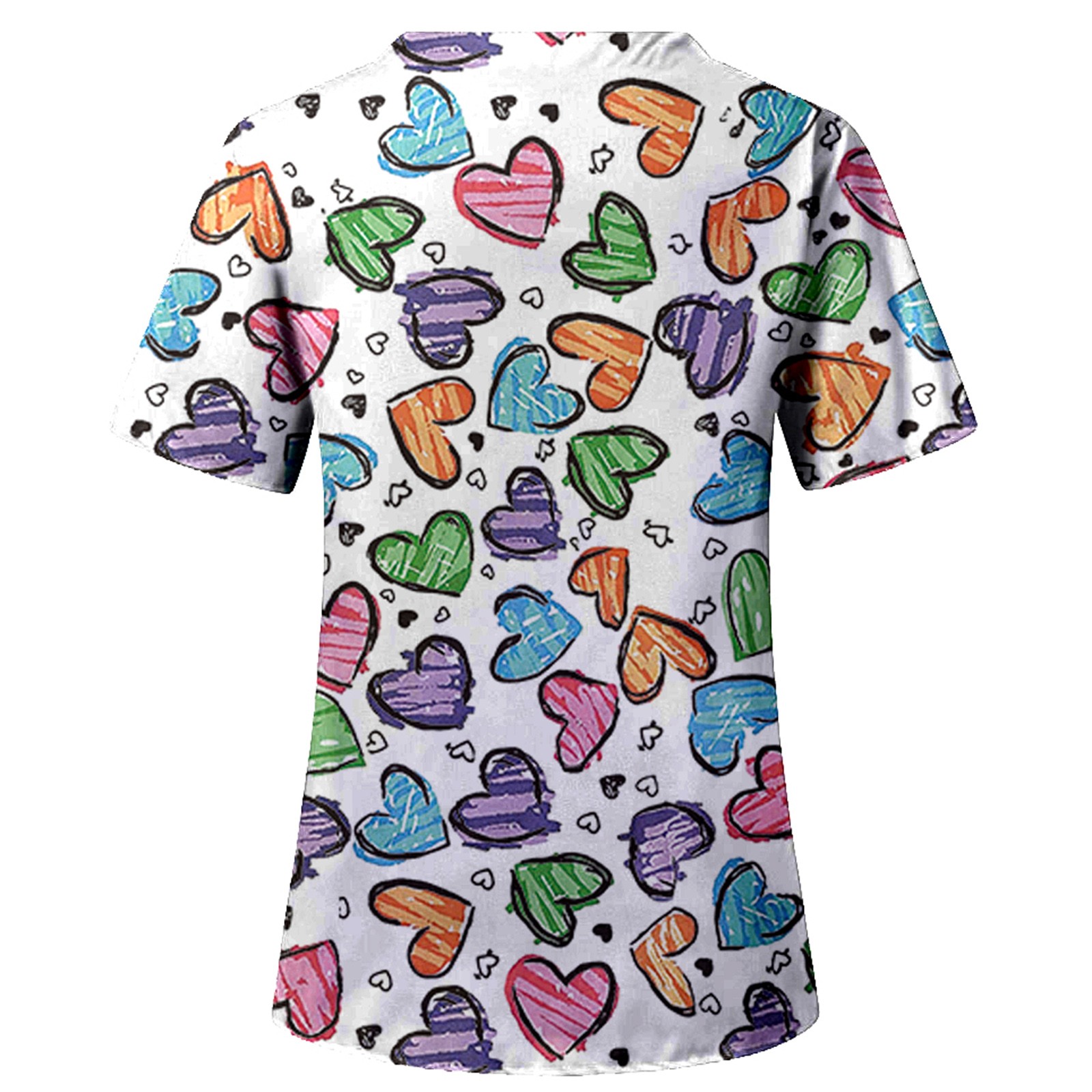 Женская блузка с коротким рукавом и v-образным вырезом, Рабочая форма для ухода, футболки с принтом сердца, туника для здоровья, рабочая одежда A50