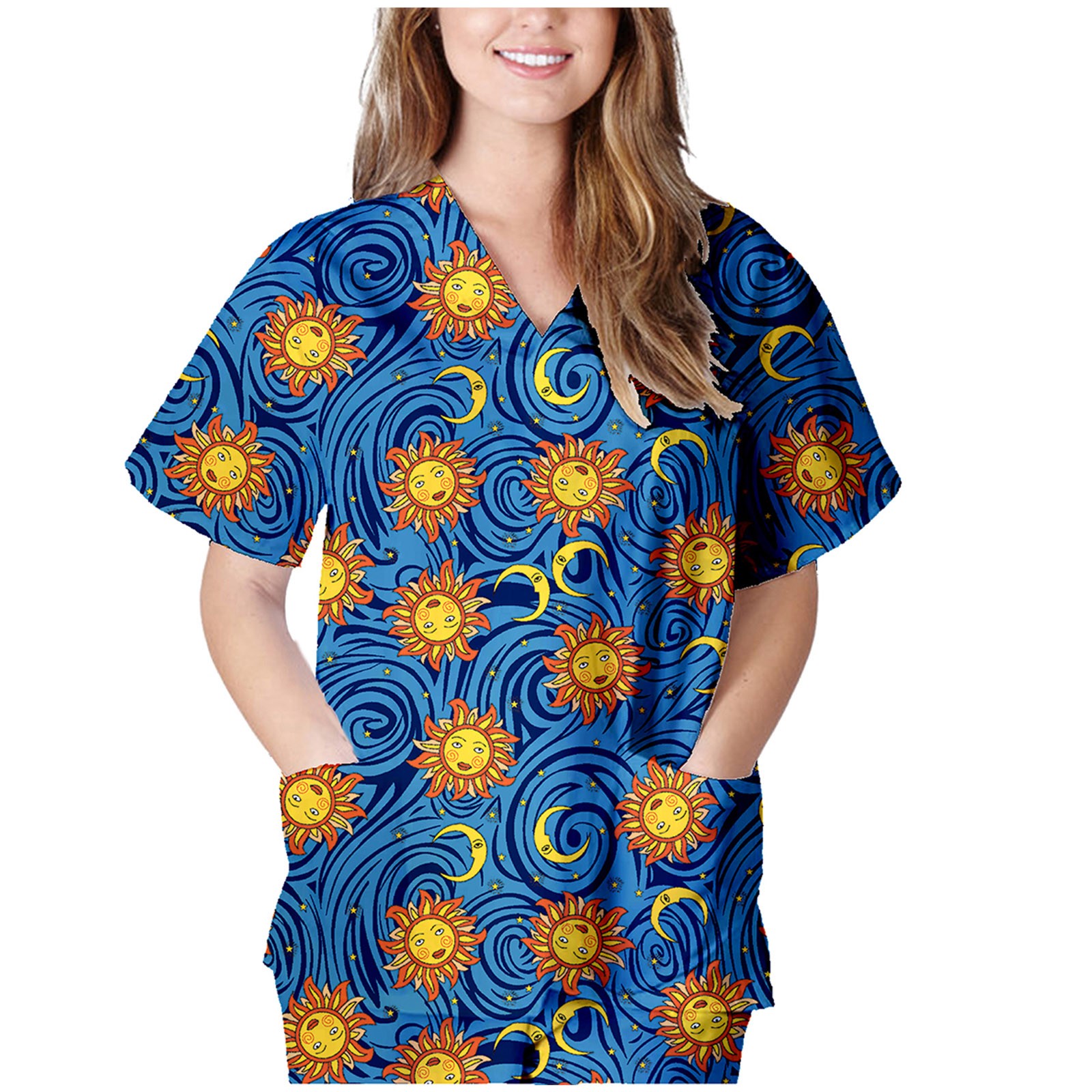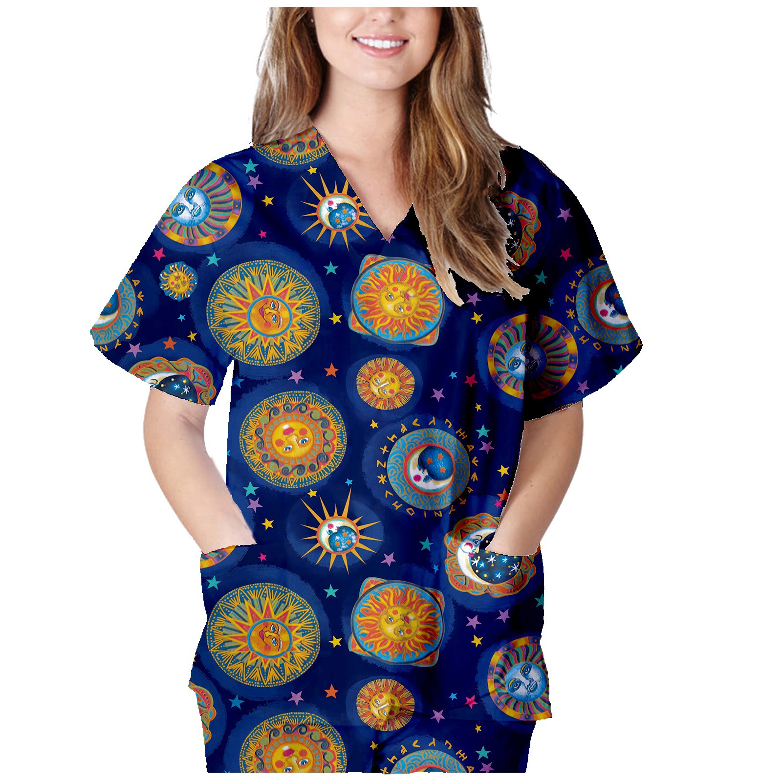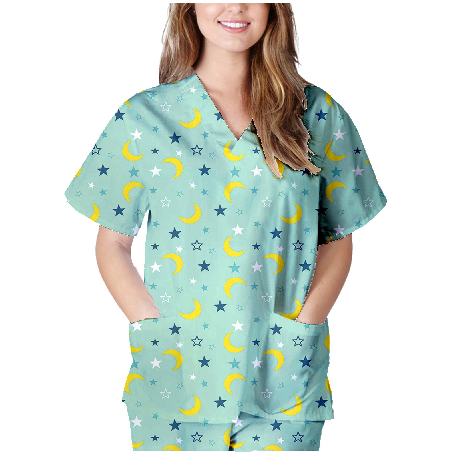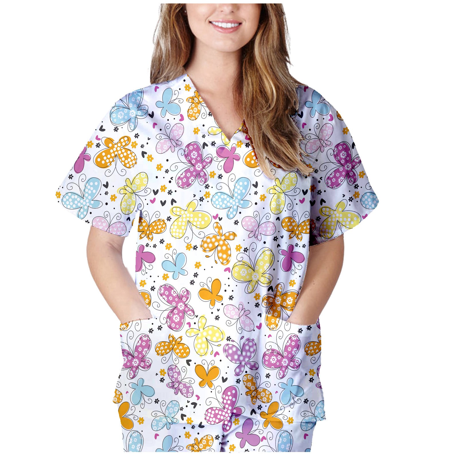 Женская блузка с коротким рукавом и v-образным вырезом, Рабочая форма для ухода, футболки с принтом сердца, туника для здоровья, рабочая одежда A50
