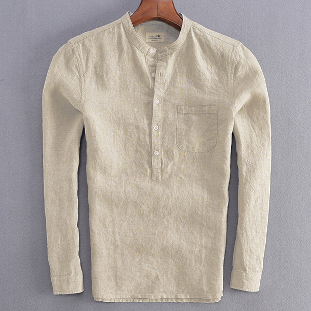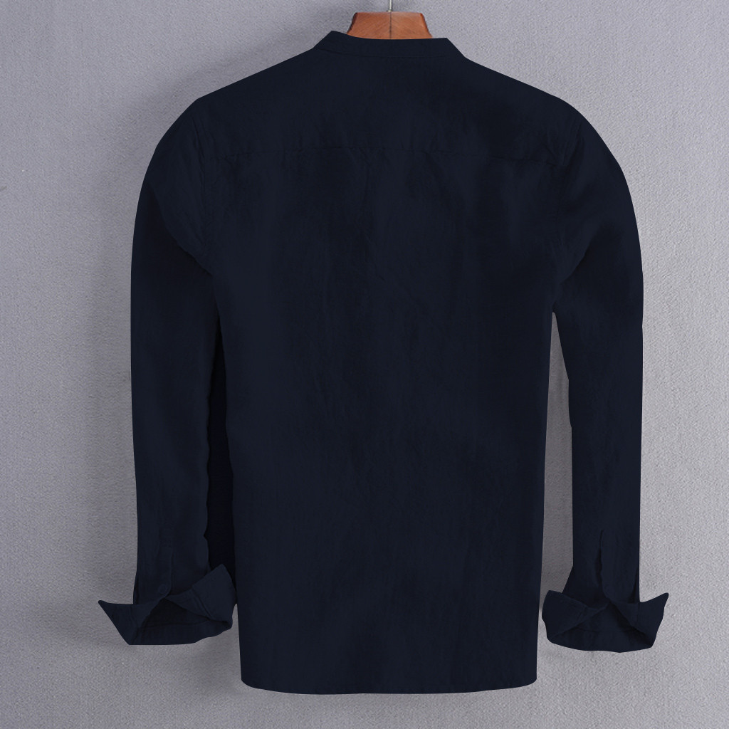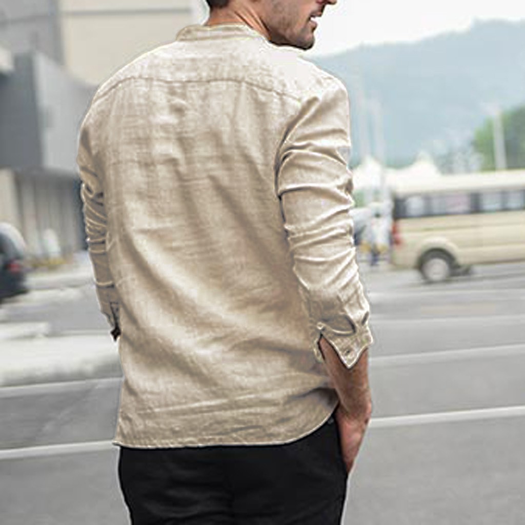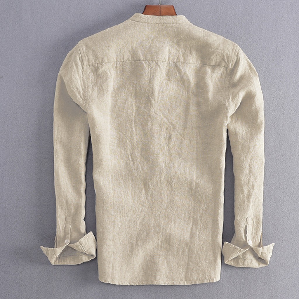 Для мужчин Винтаж Однотонная одежда на пуговицах, плотный льняной пиджак с длинными рукавами в стиле ретро Рубашки, Топы, блузки