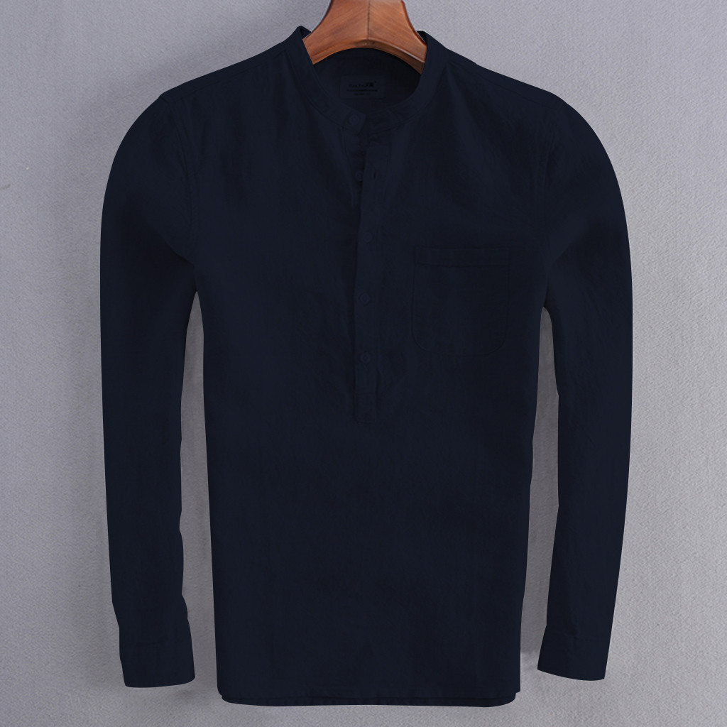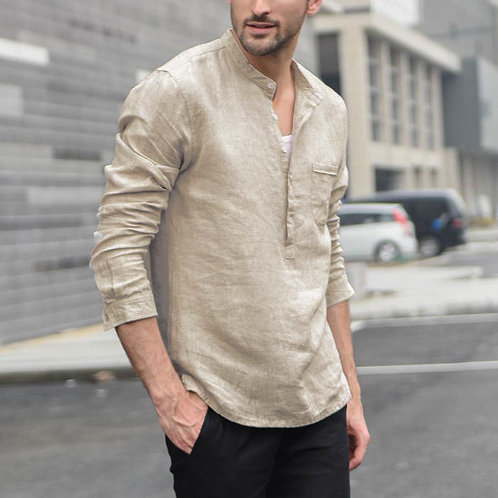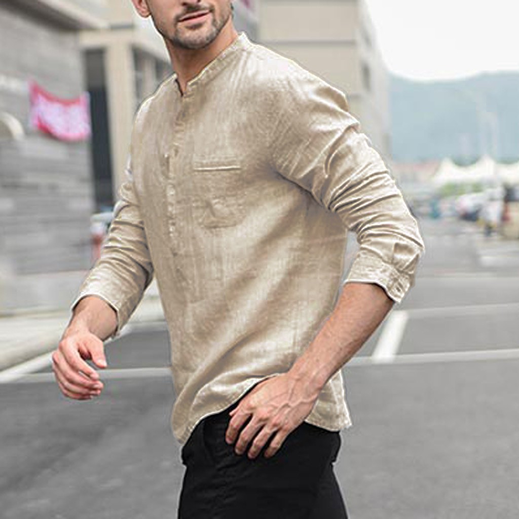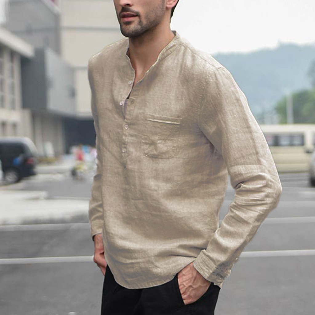 Для мужчин Винтаж Однотонная одежда на пуговицах, плотный льняной пиджак с длинными рукавами в стиле ретро Рубашки, Топы, блузки